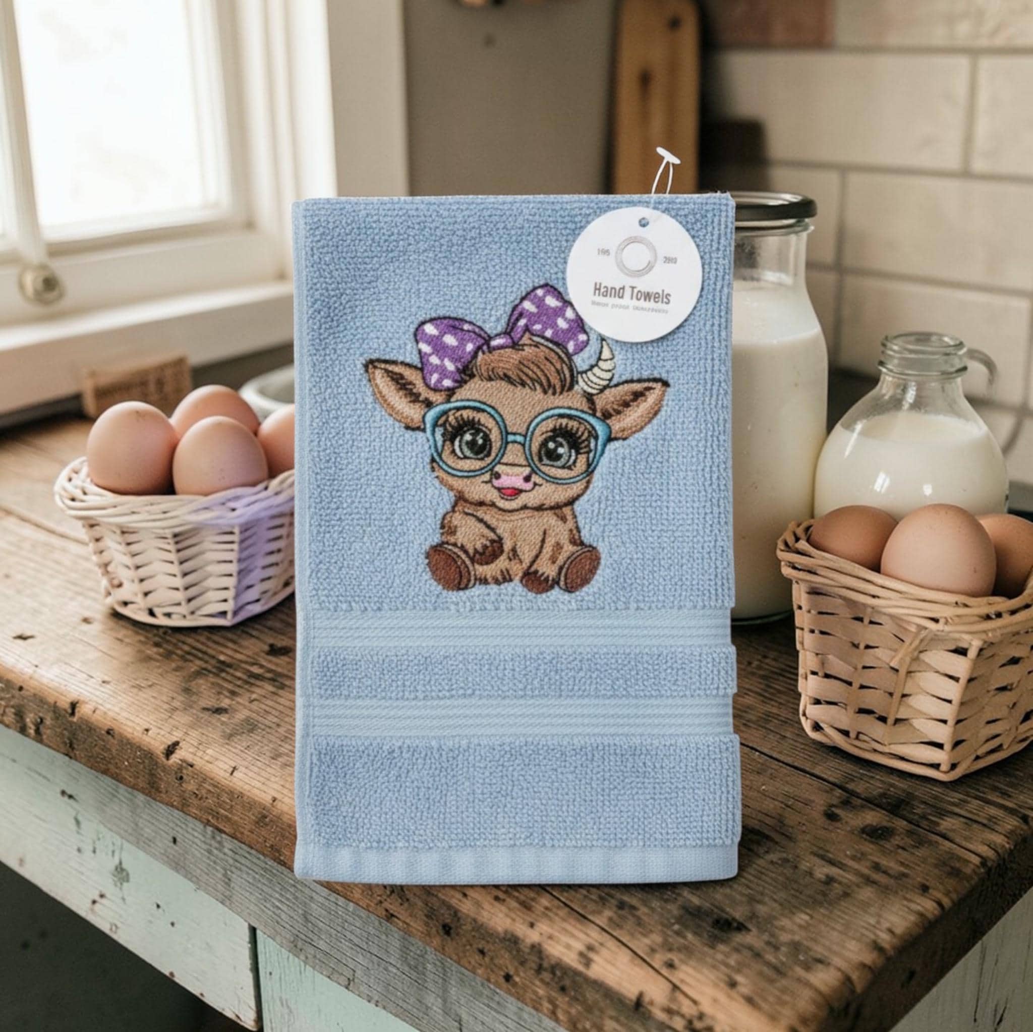 Add a touch of rustic charm to your home with this adorable cow embroidered towel! Featuring a beautifully stitched cow design, this soft and absorbent towel is perfect for farmhouse kitchens, country bathrooms, or anyone who loves charming animal décor. It makes a thoughtful gift for cow lovers, farmhouse décor fans, and anyone who appreciates handmade touches. Each towel is made with care and can be personalized to create a one-of-a-kind gift.