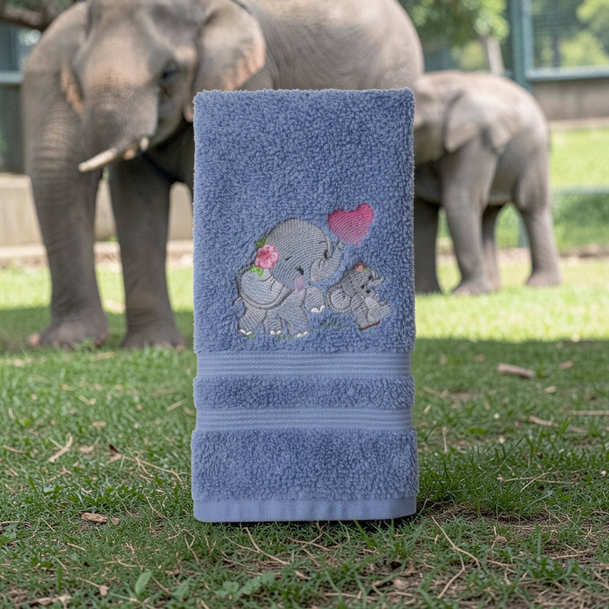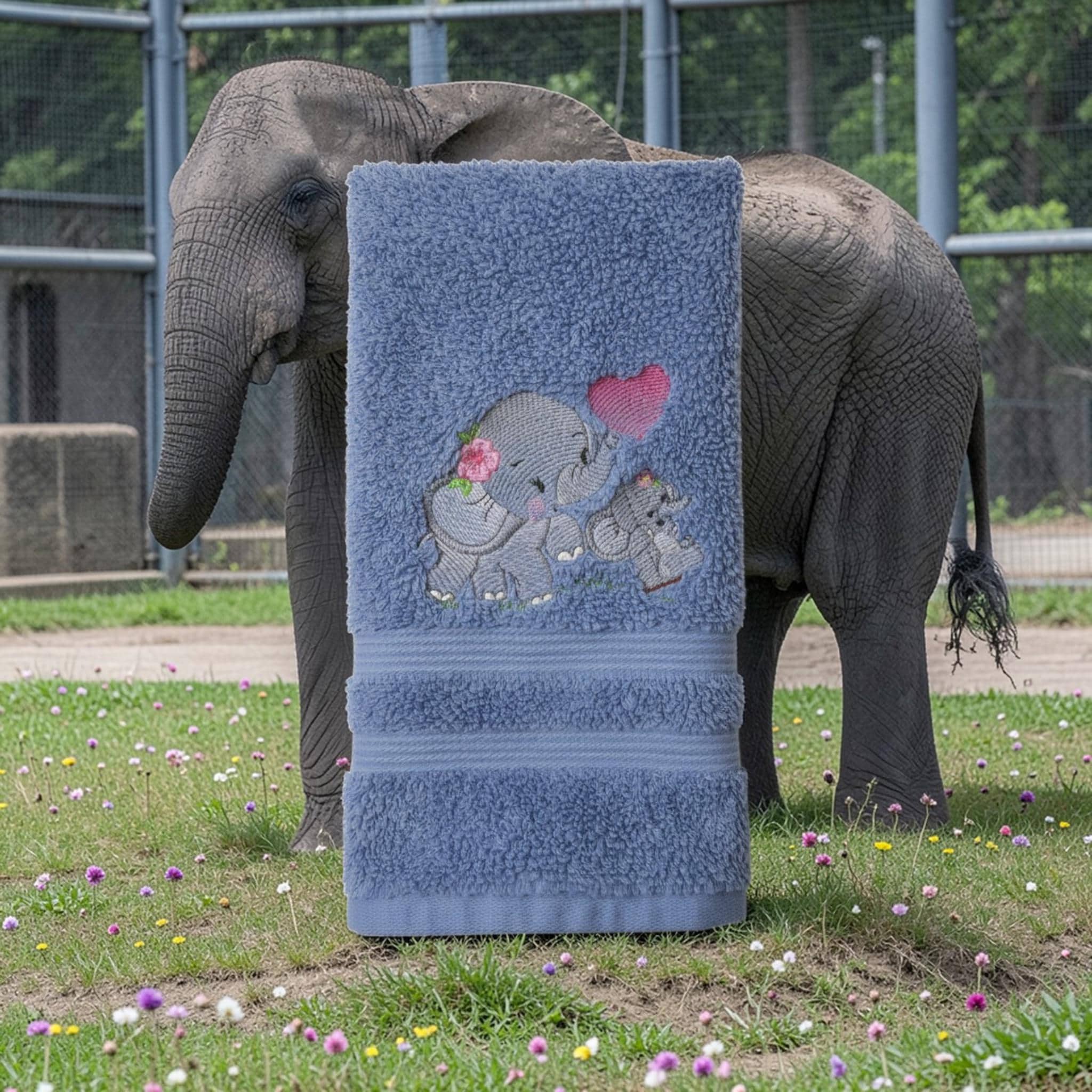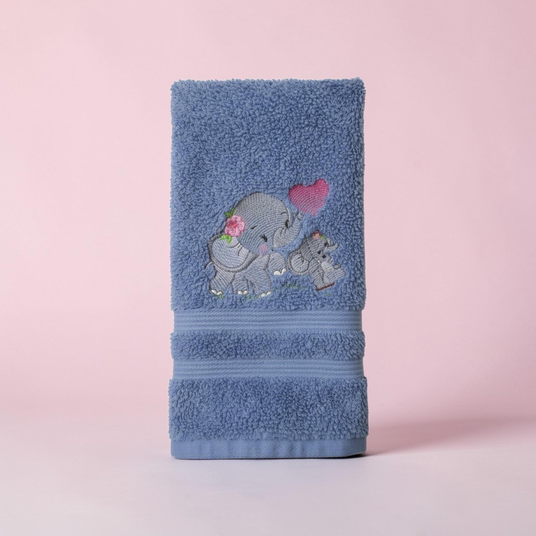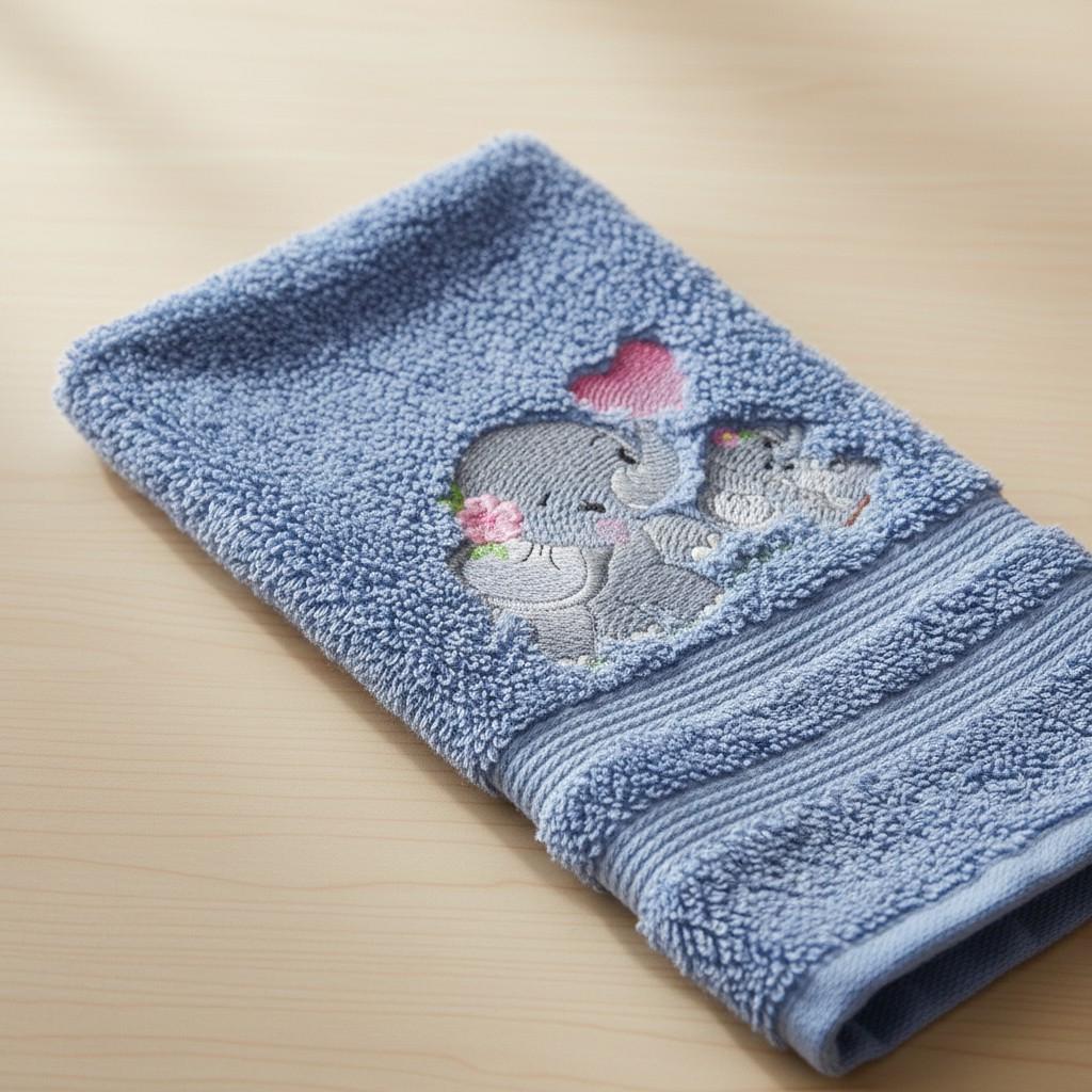 Custom‑made embroidered hand towels are personalized towels featuring stitched designs, names, initials, or logos. They are typically made from soft, absorbent cotton and customized to match a theme, occasion, or decor. Embroidery adds a raised, textured detail that looks elegant and long‑lasting. These towels are often used as thoughtful gifts, decorative accents in bathrooms and kitchens, or branded items for events and businesses.A sweet and charming hand towel featuring an adorable baby elephant embroidered in soft gray tones with oversized floppy ears, rosy cheeks, and a tiny curved trunk. Add delicate accents like a small heart, flower, or butterfly near the elephant for extra cuteness. This design looks beautiful on a white, cream, pale blue, or light gray towel and makes a perfect gift for baby showers, nurseries, safari-themed bathrooms, or animal lovers.