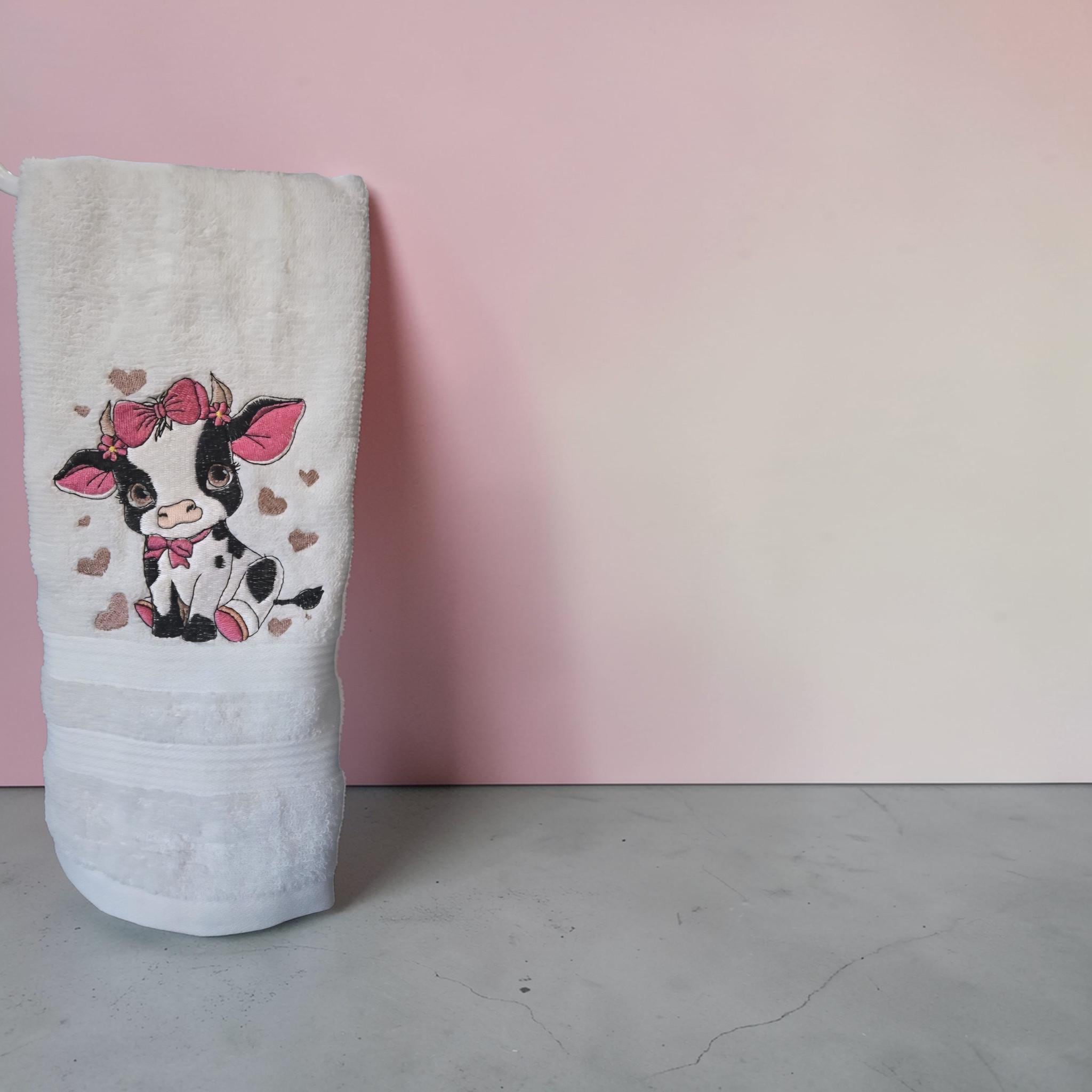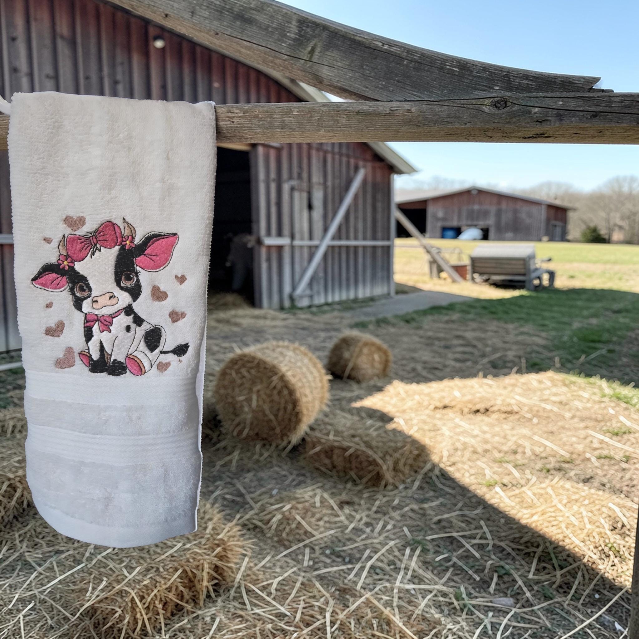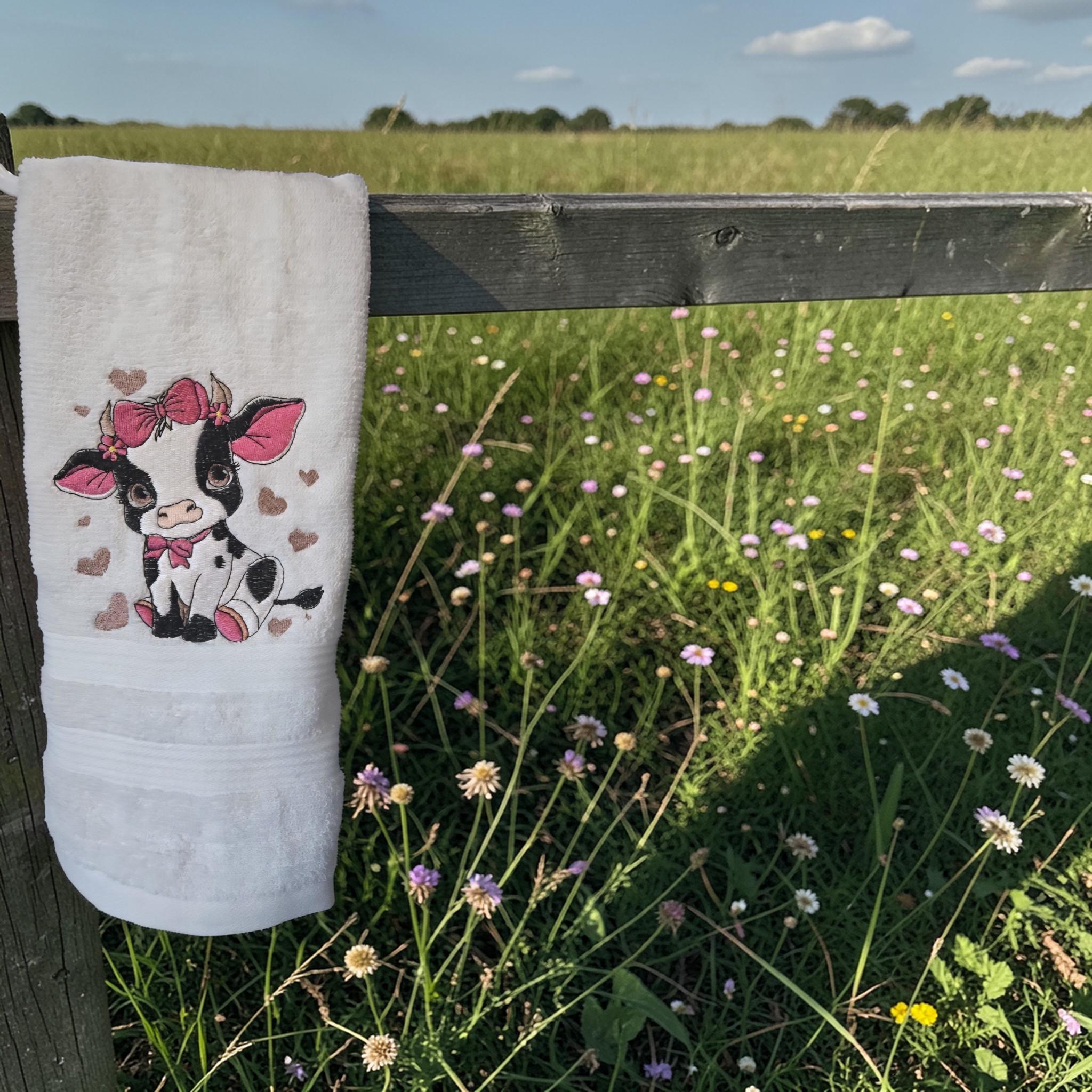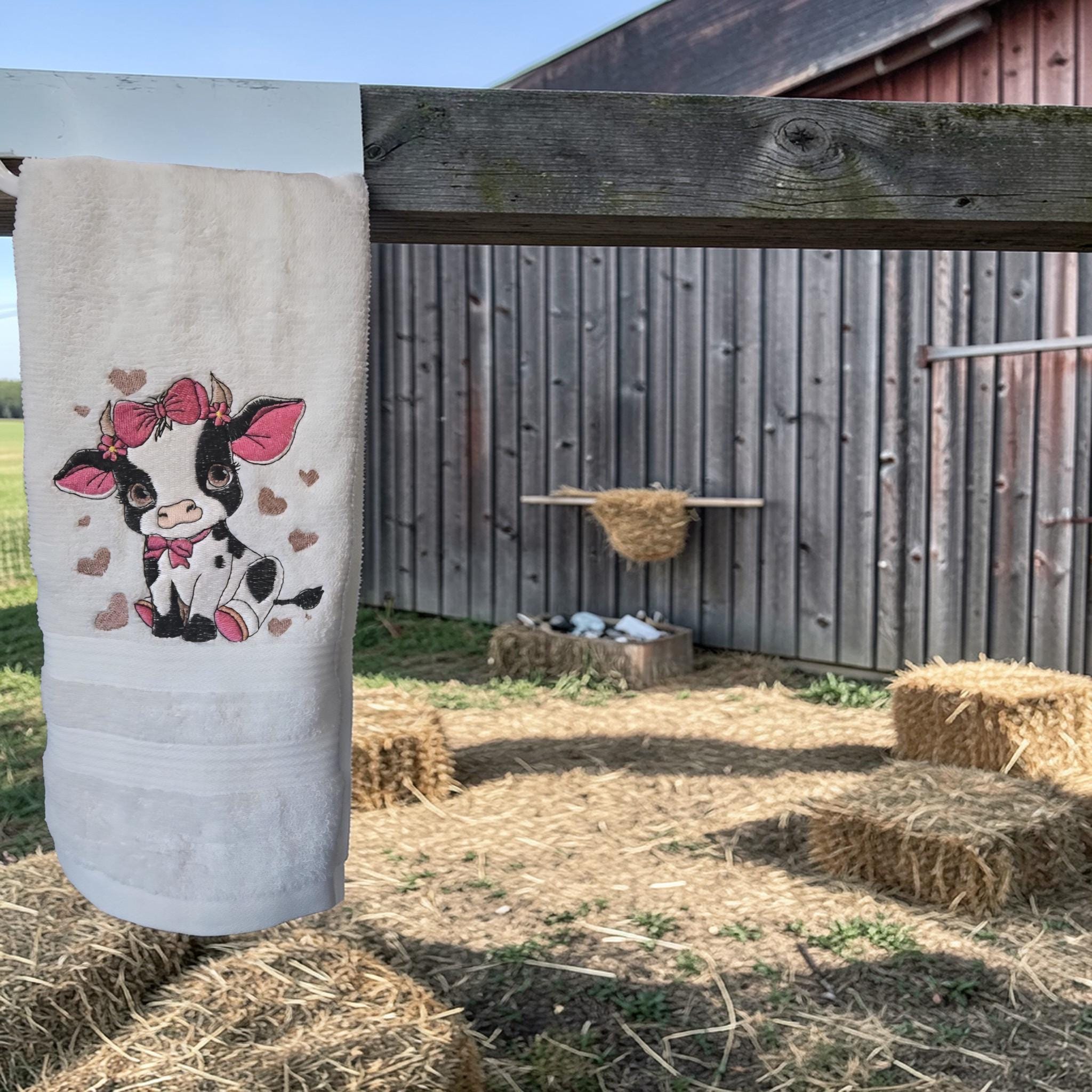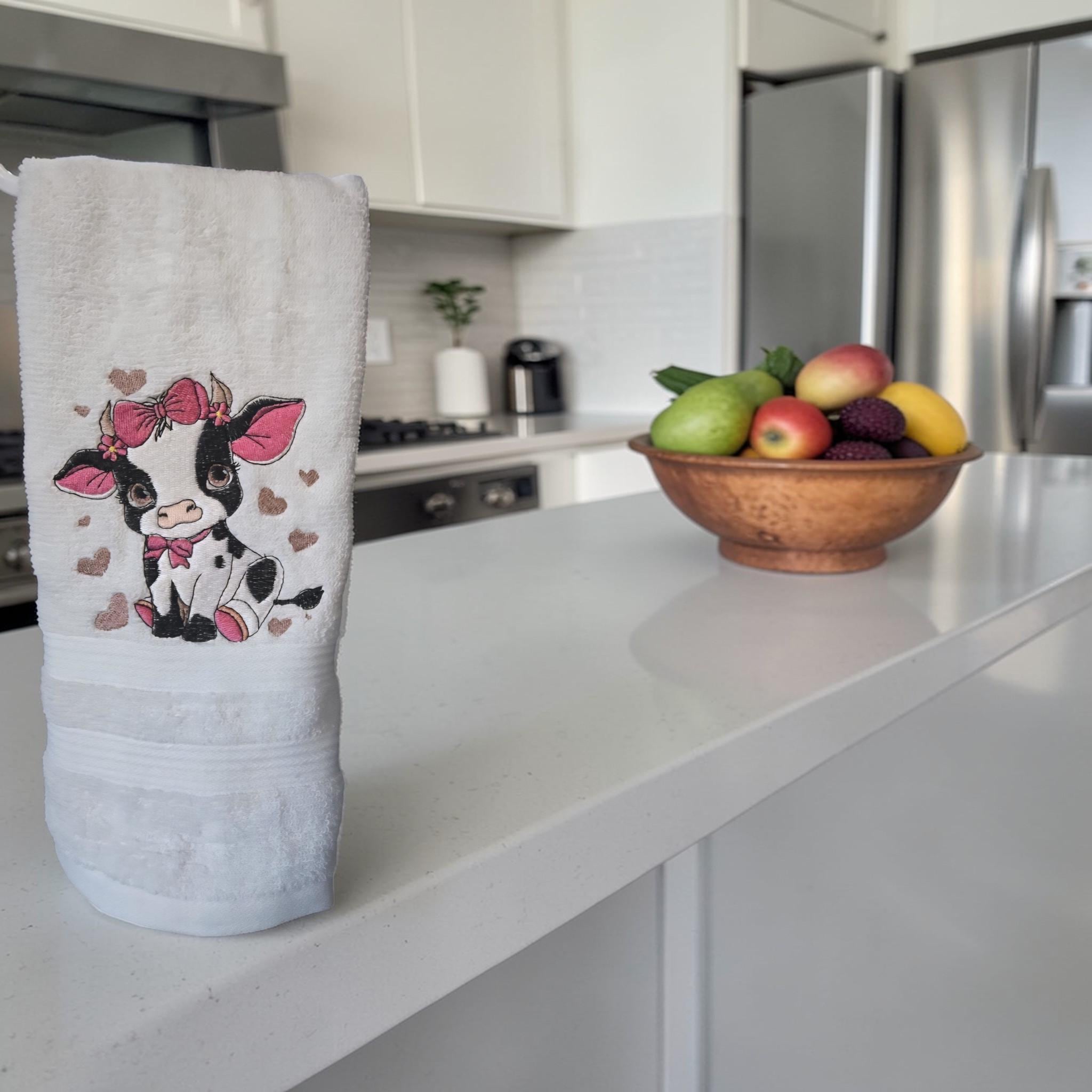 Embroidered Cow Hand Towel
