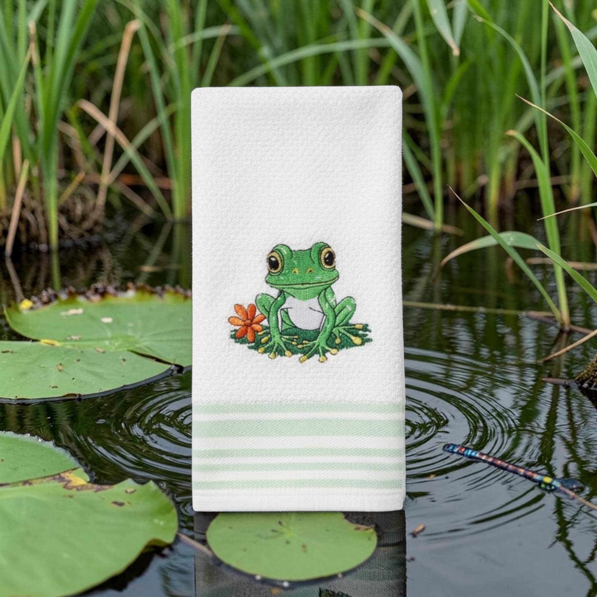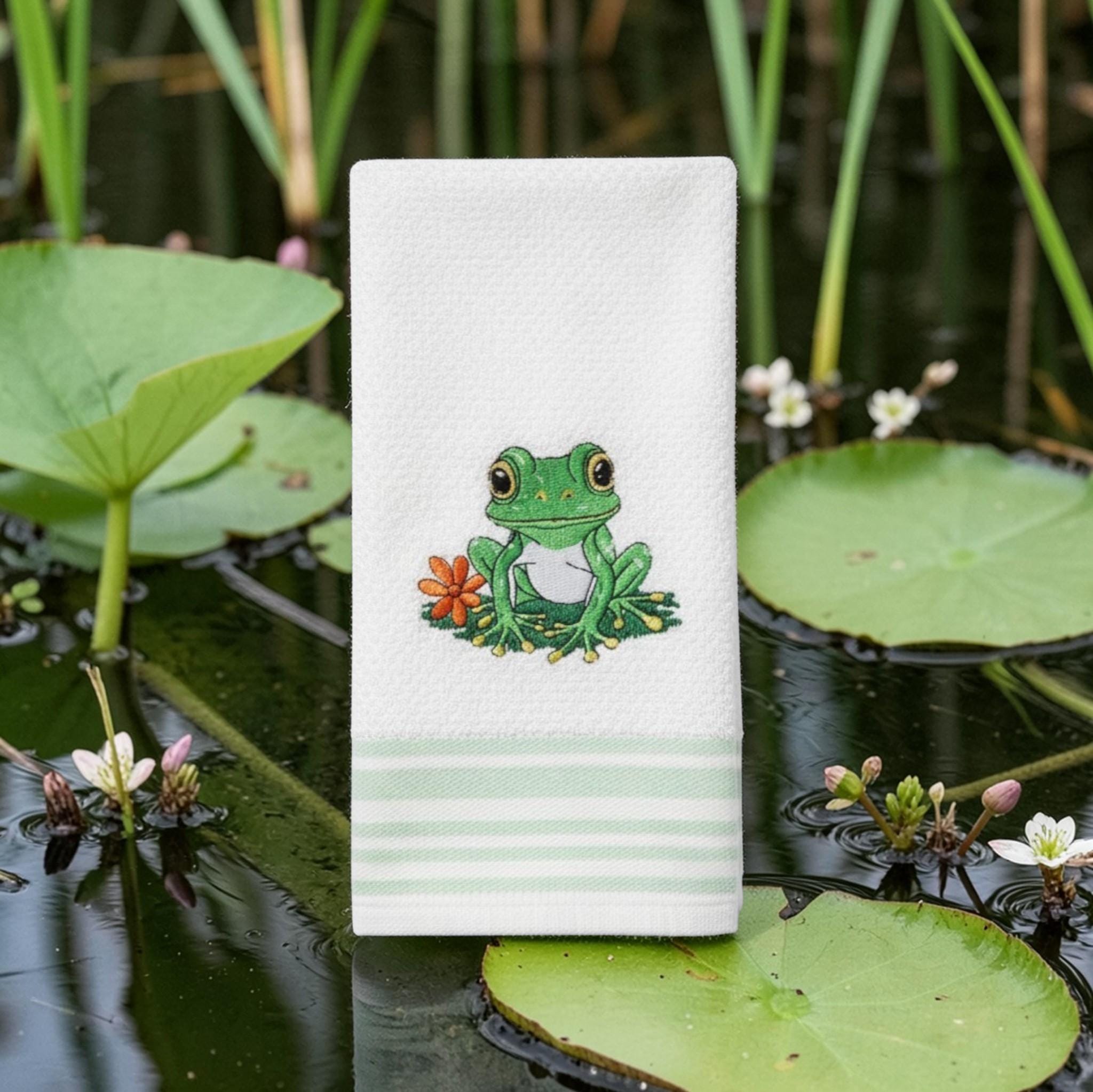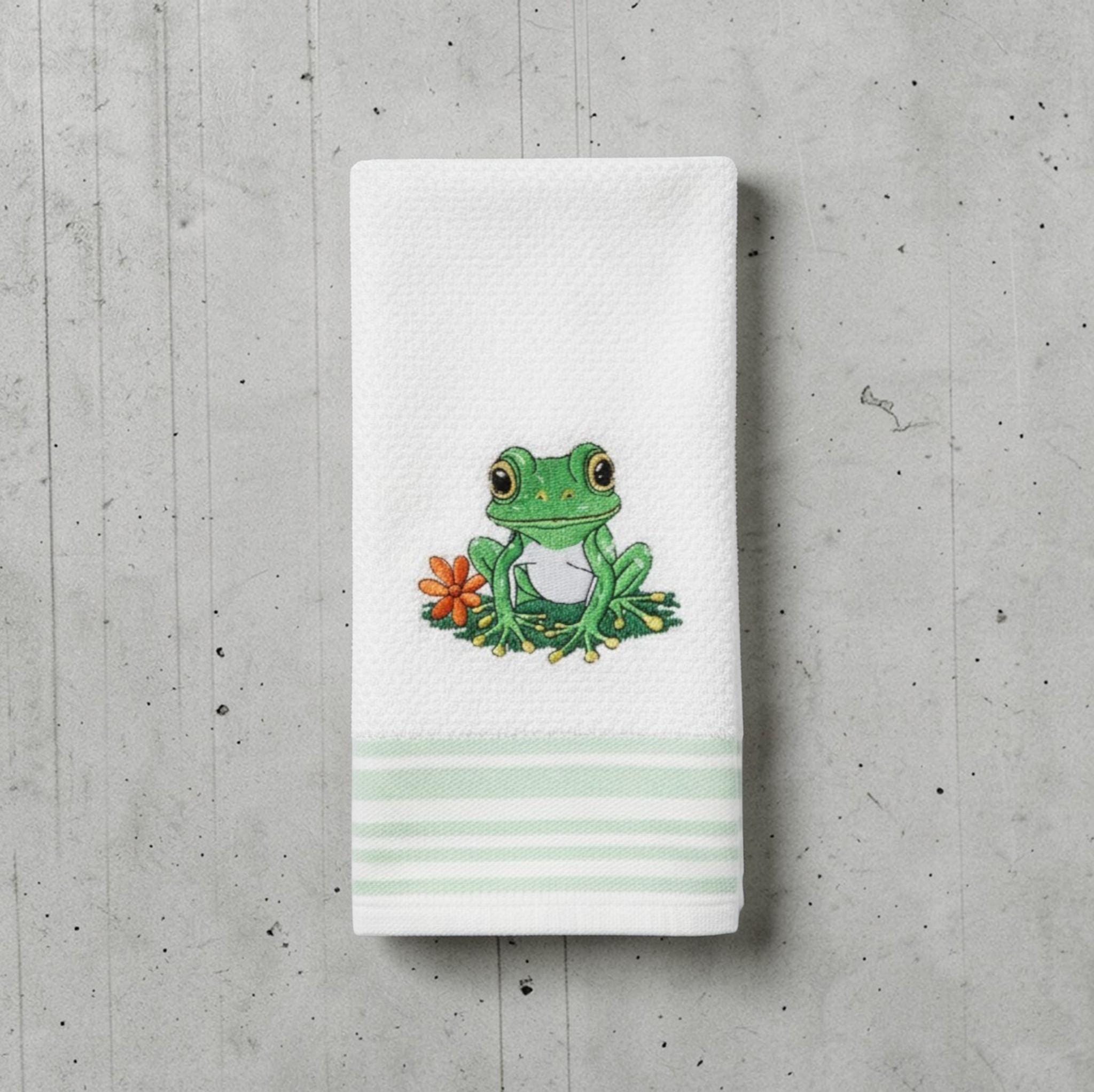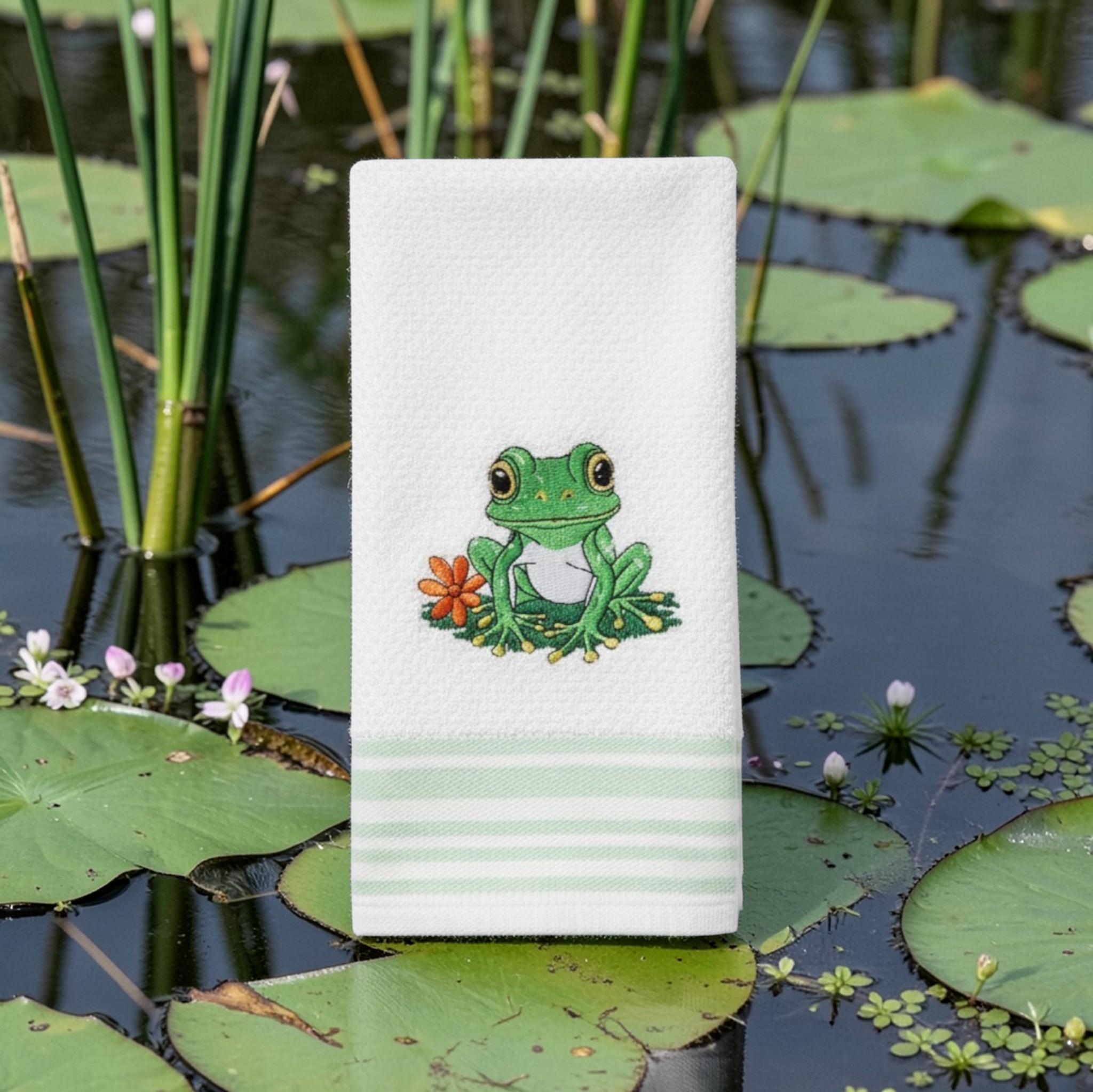 Embroidered Frog Towel