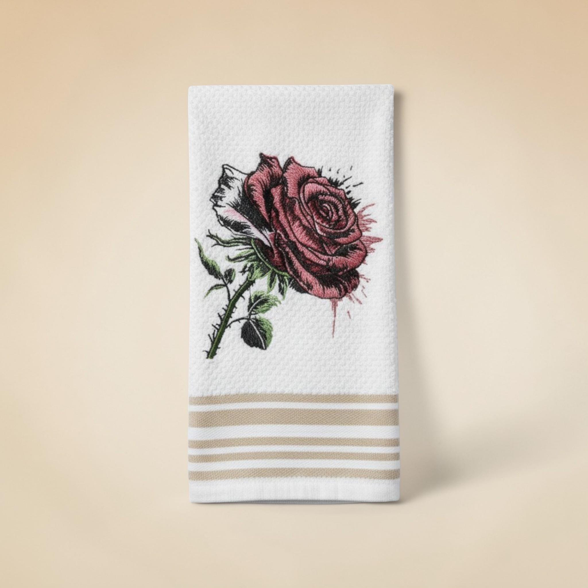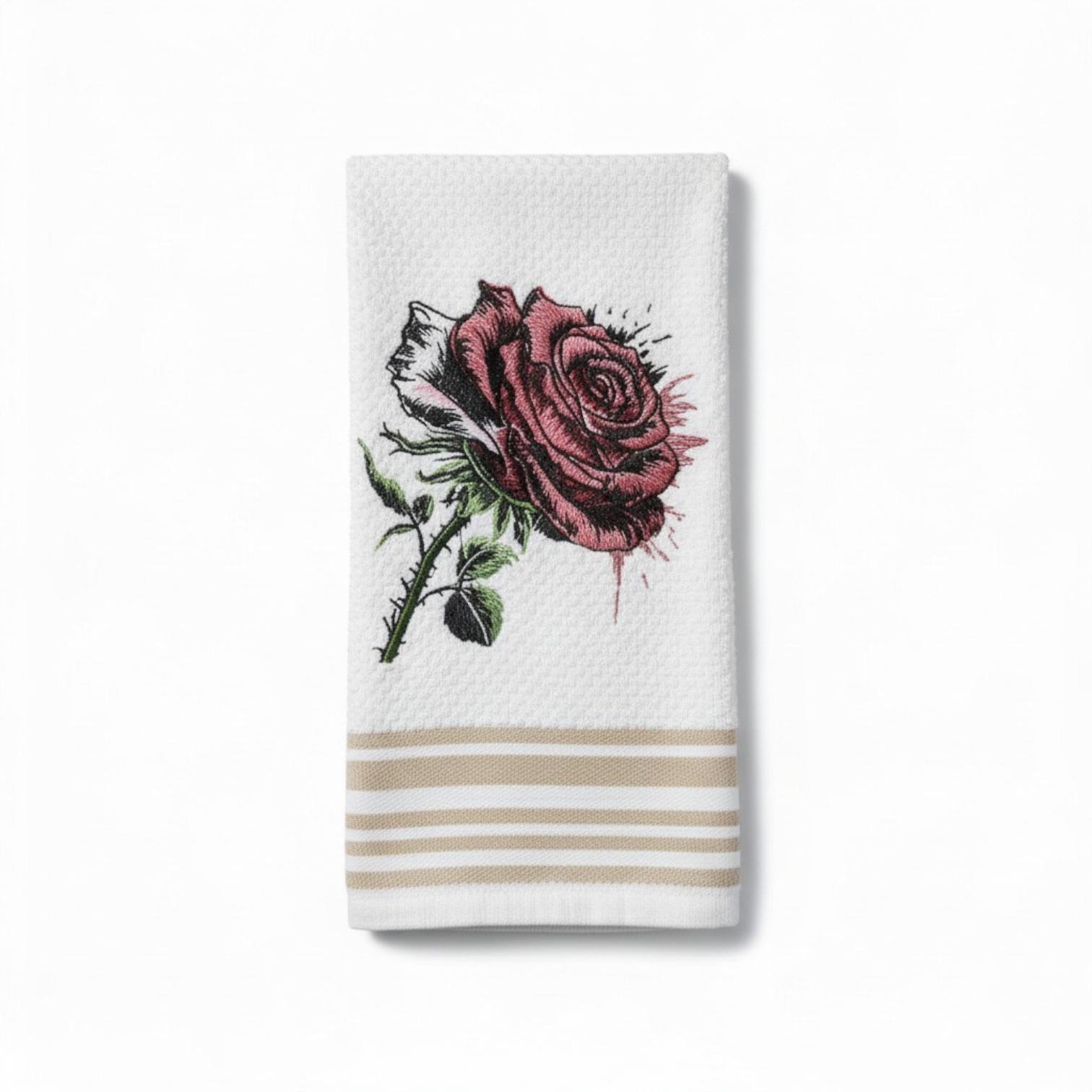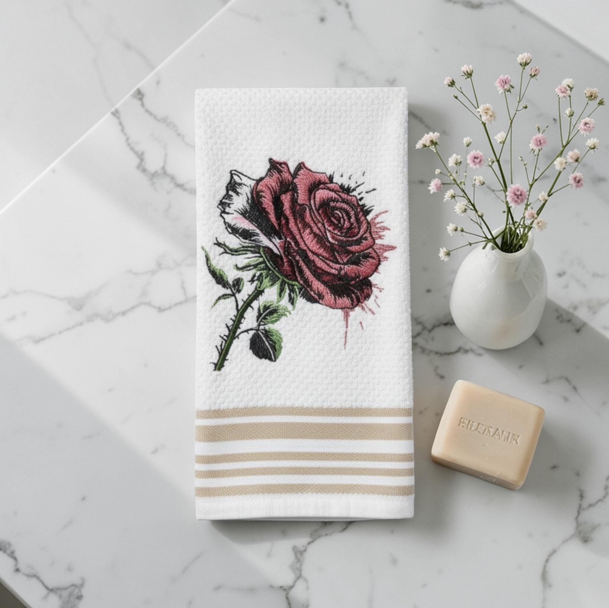 Embroidered Rose Hand Towel