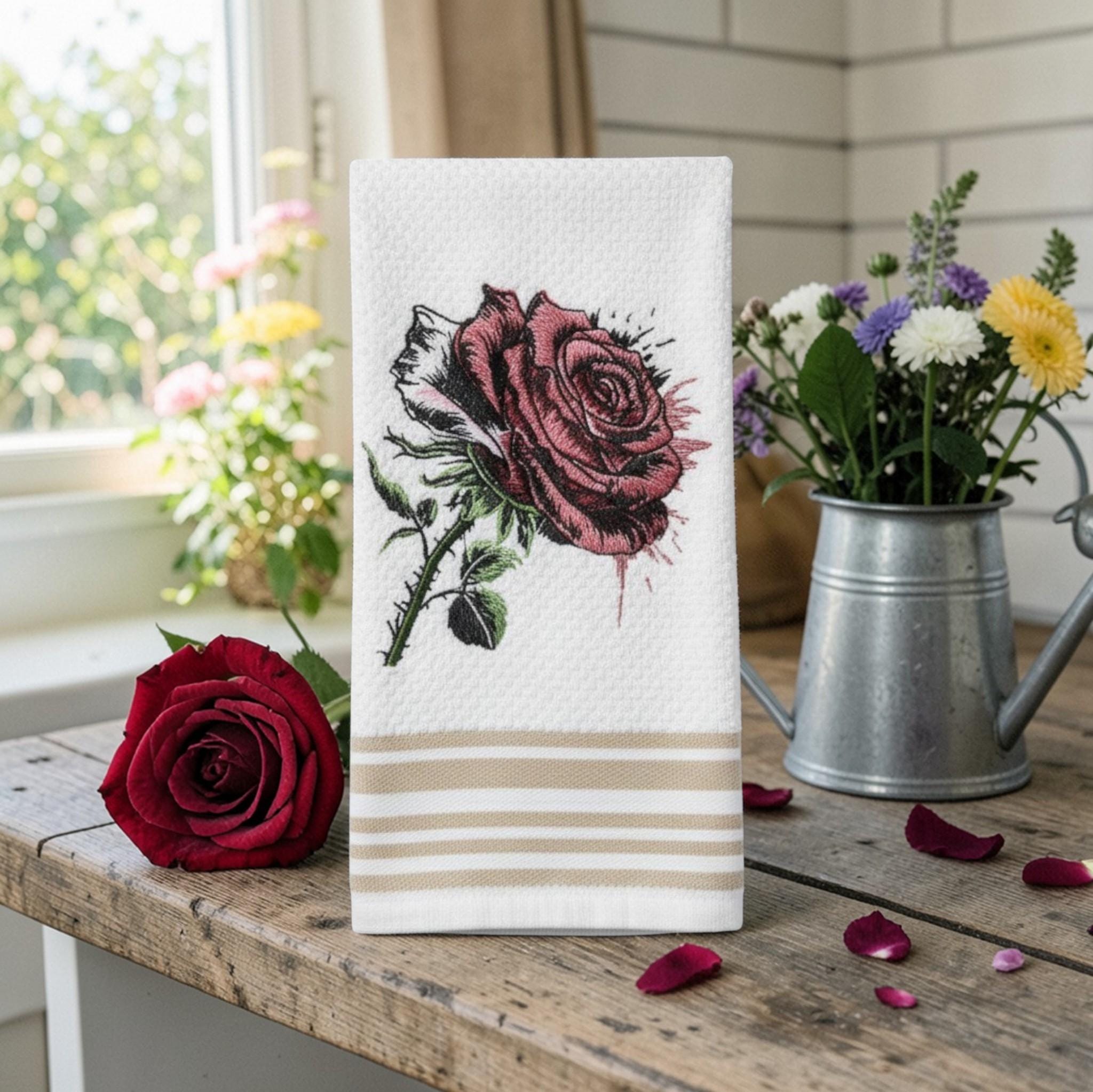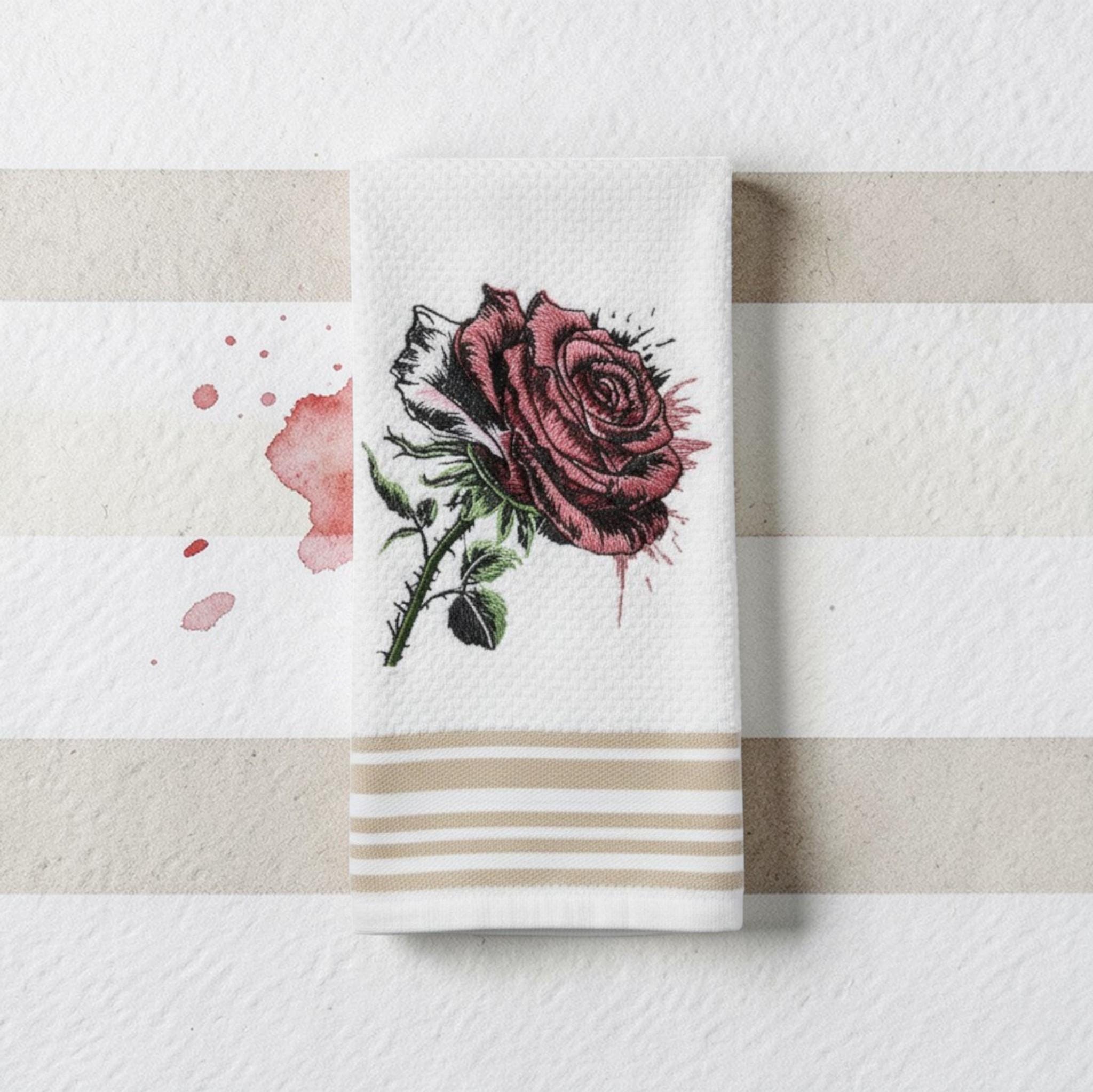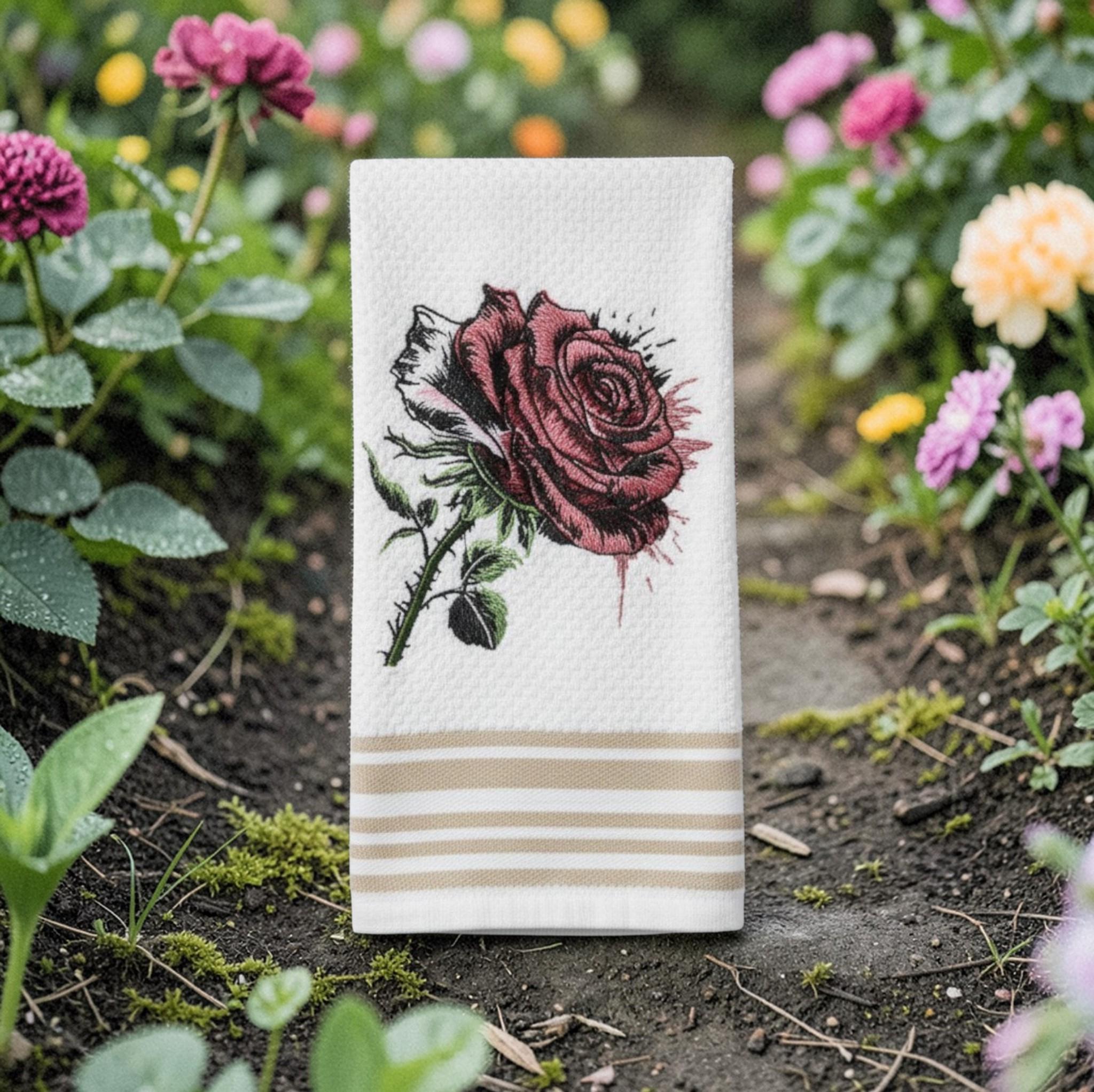 Embroidered Rose Hand Towel