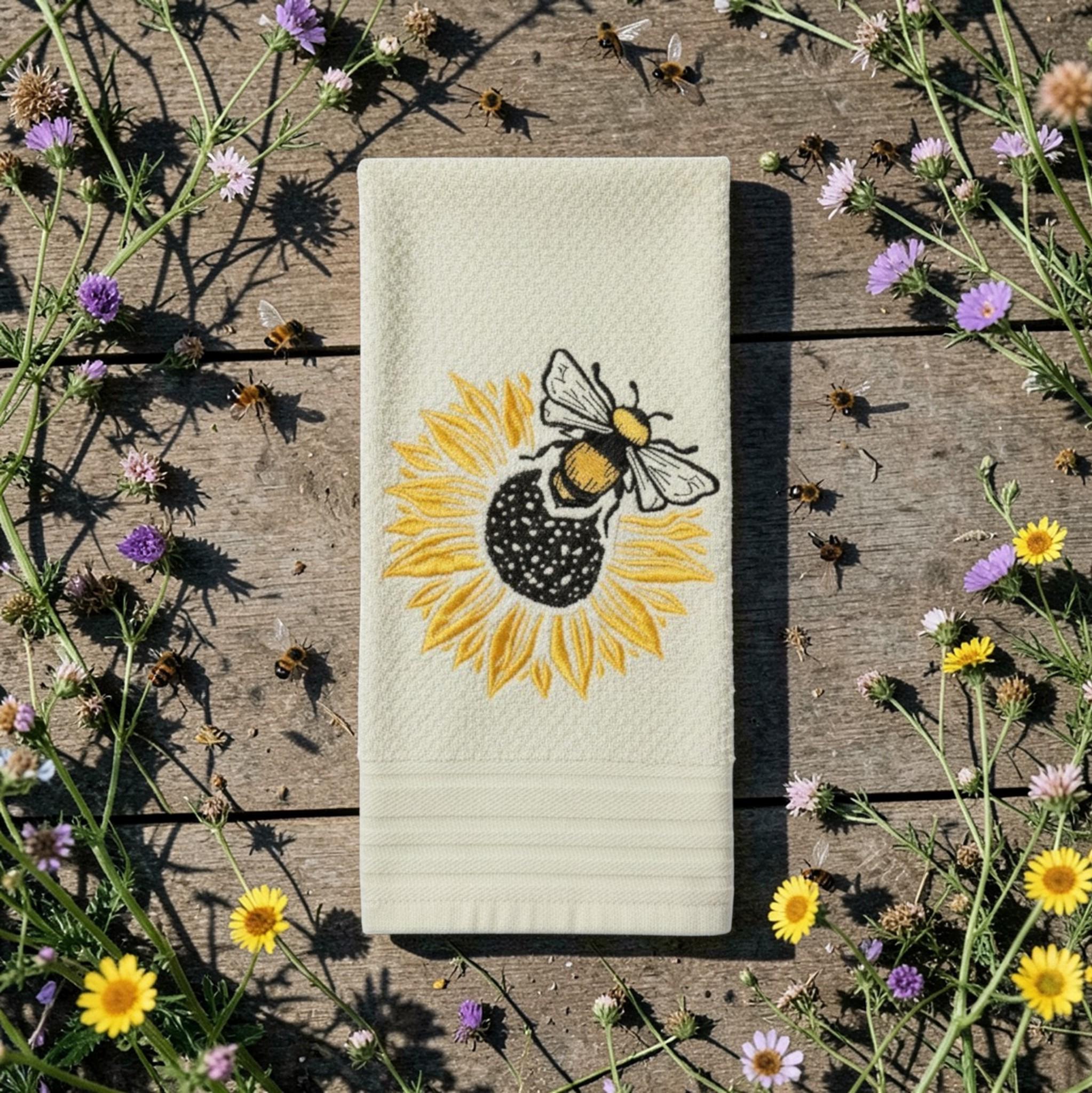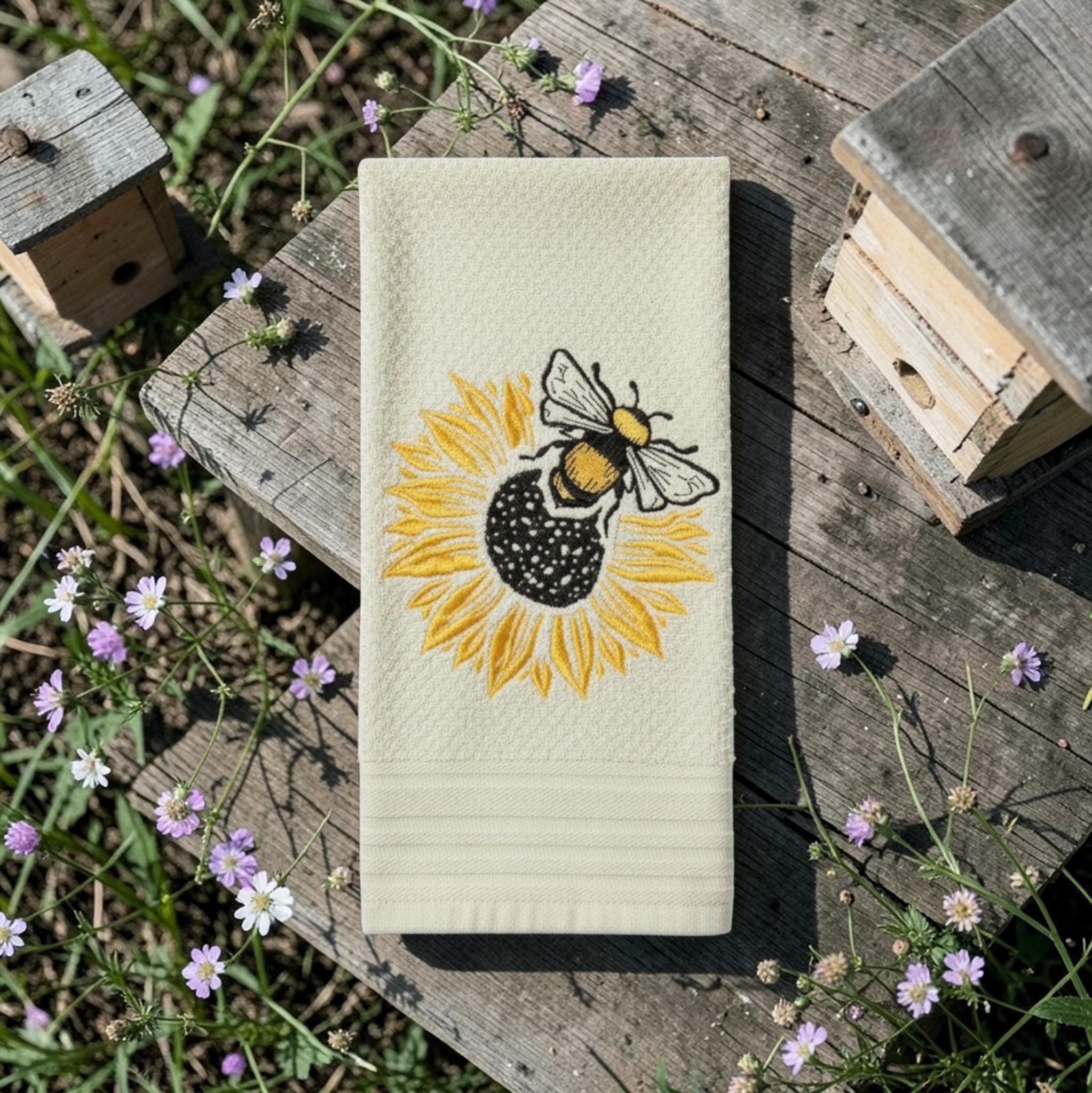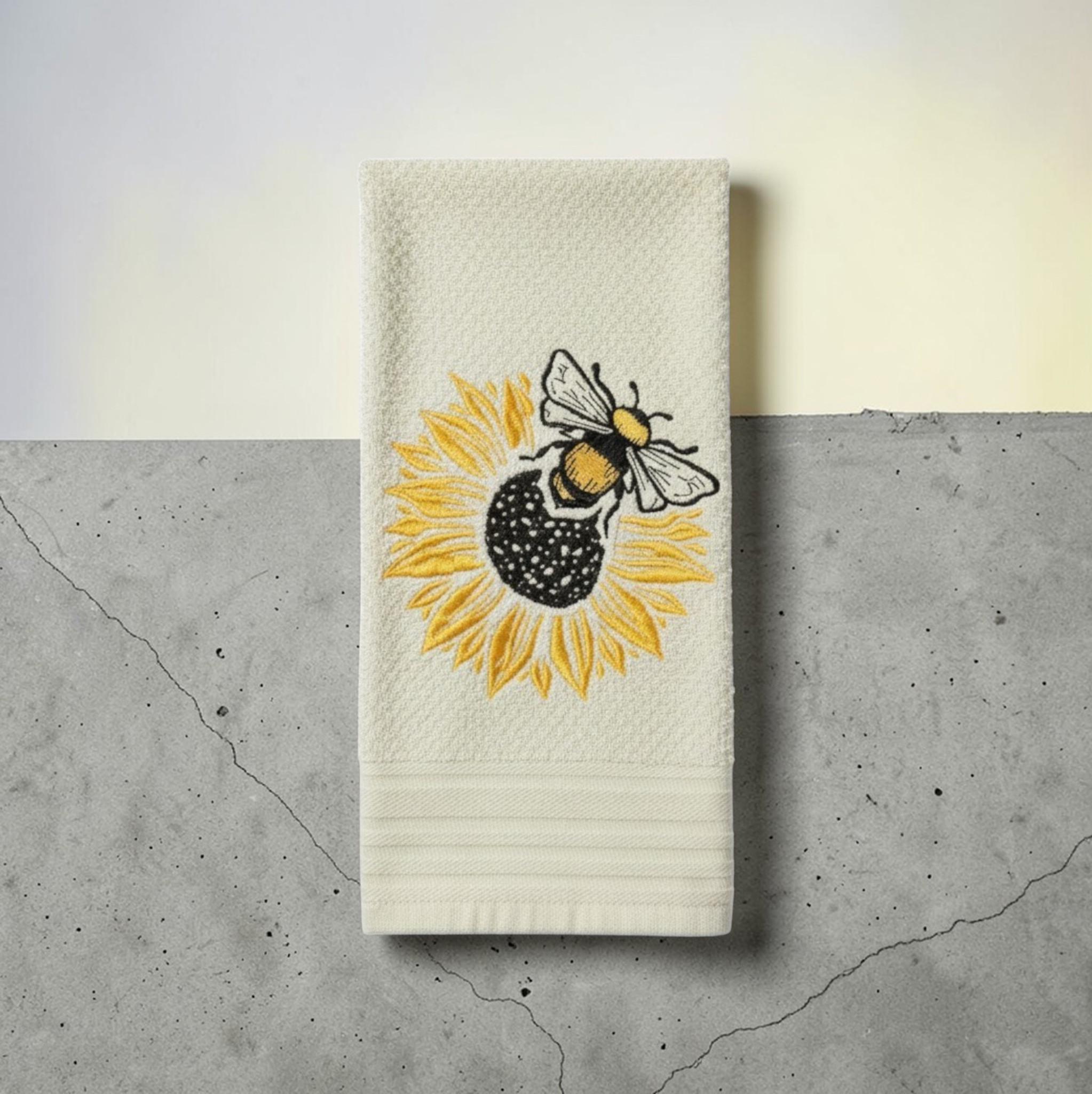 Embroidered sunflower bee Towel