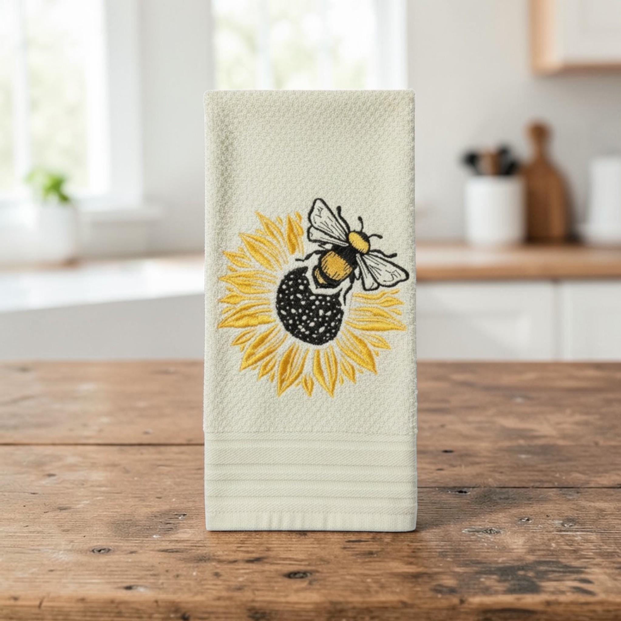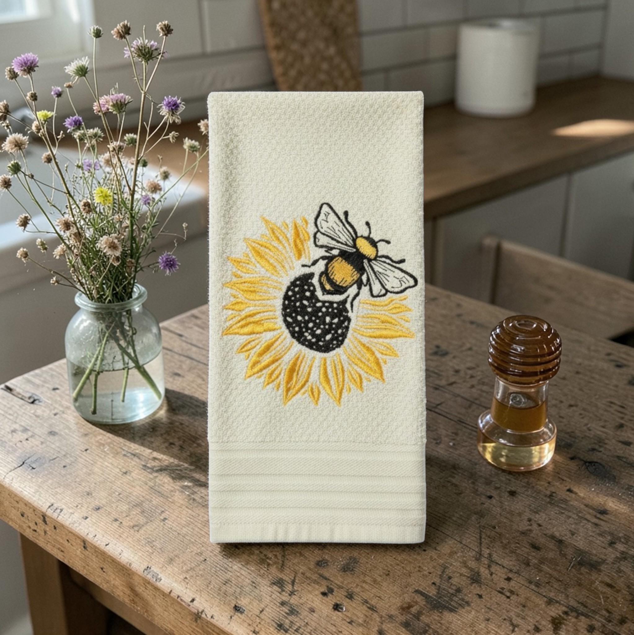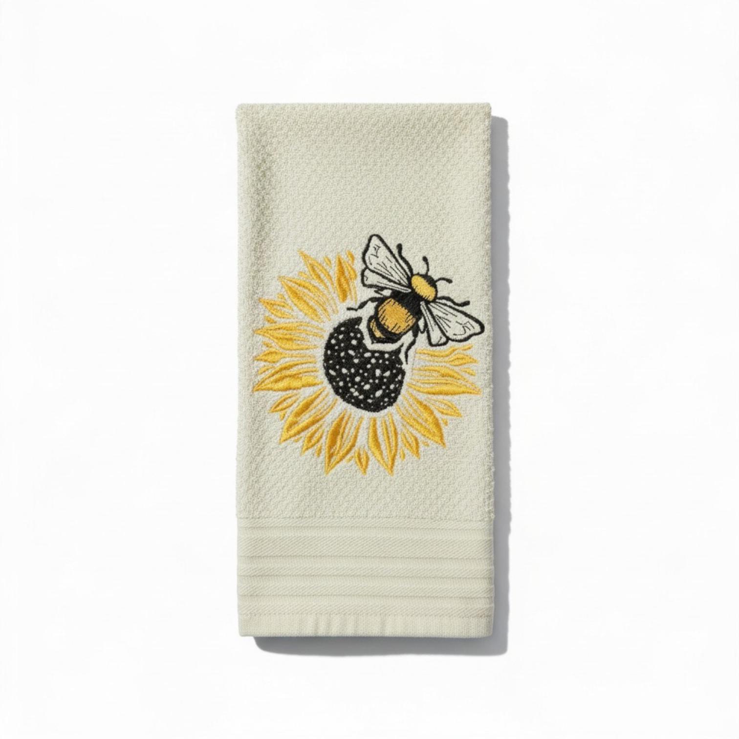 Embroidered sunflower bee Towel