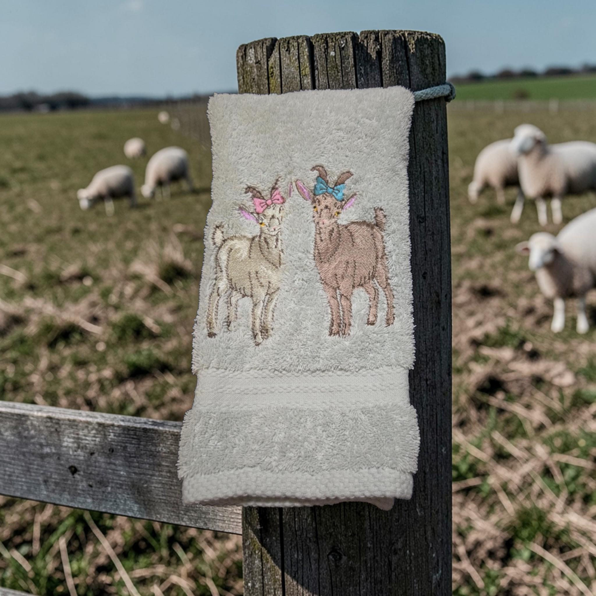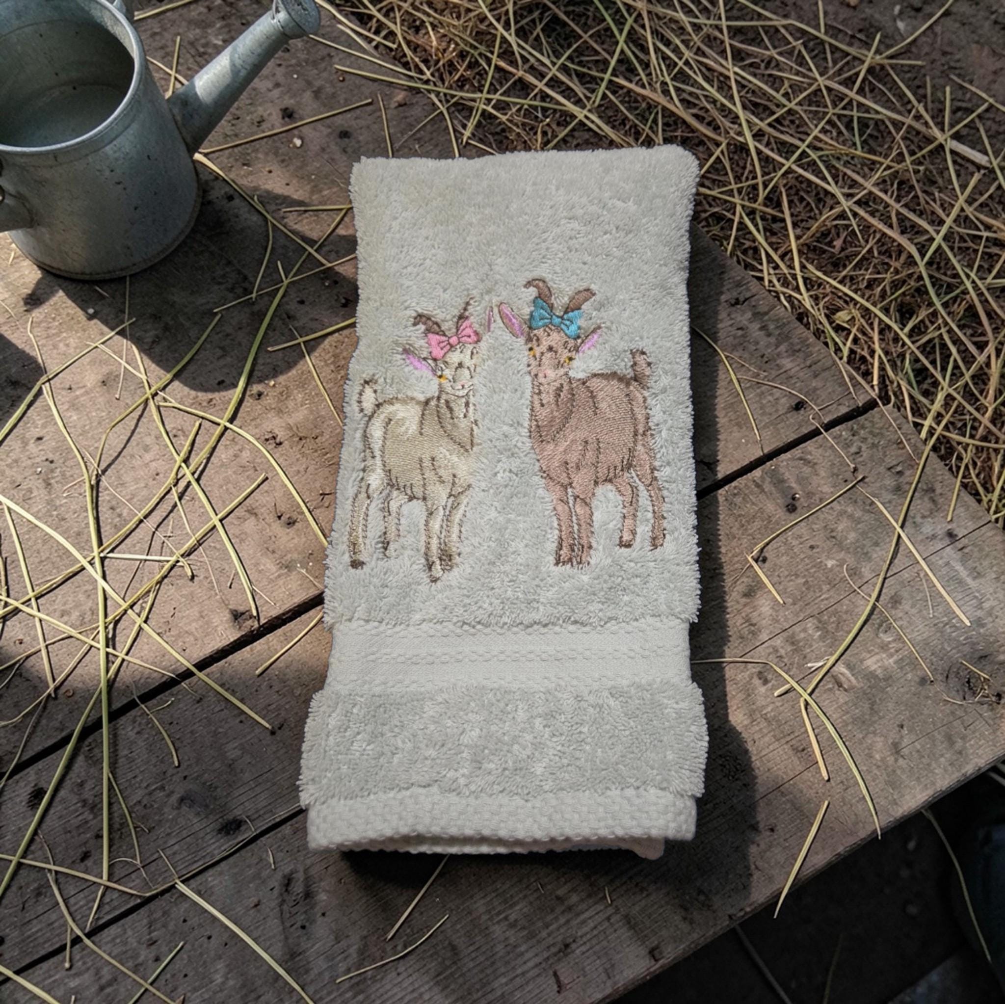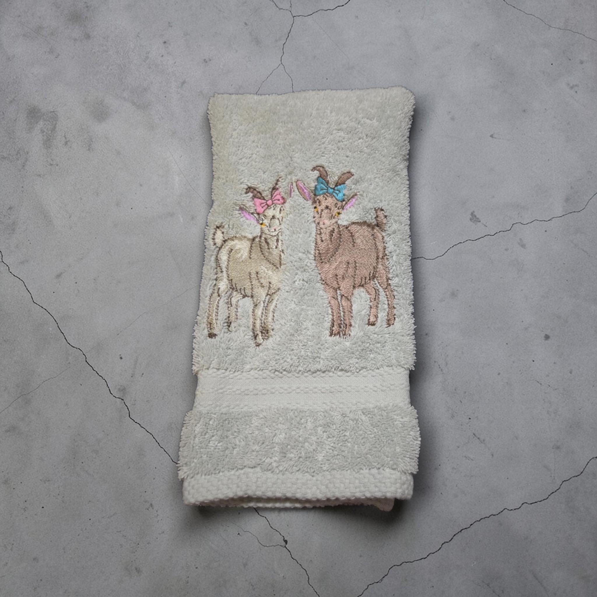 embroidered goat towel