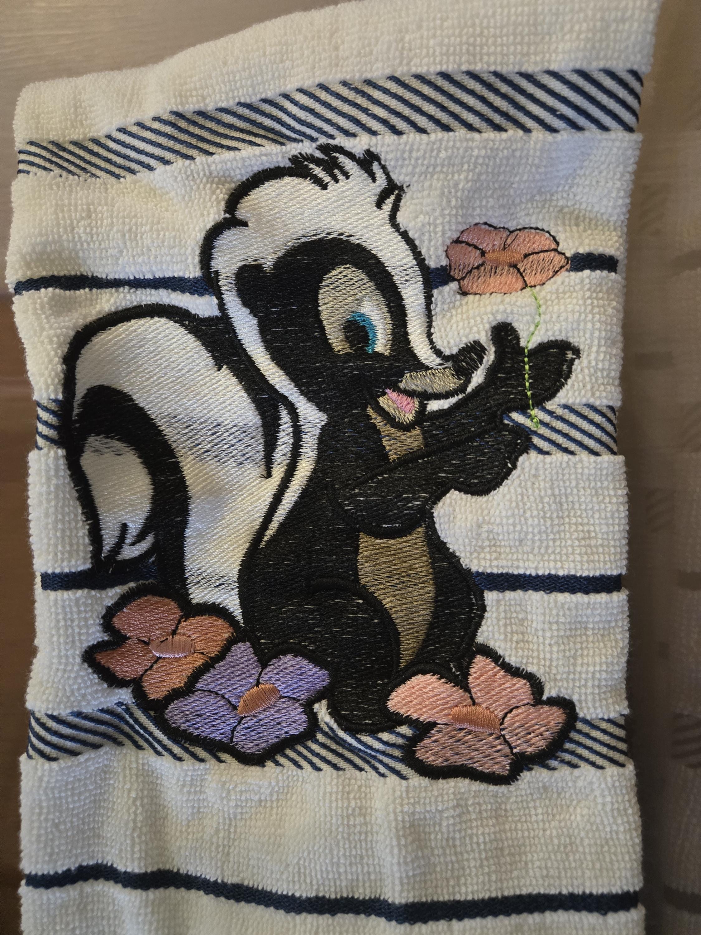 embroidered flower the skunk towel