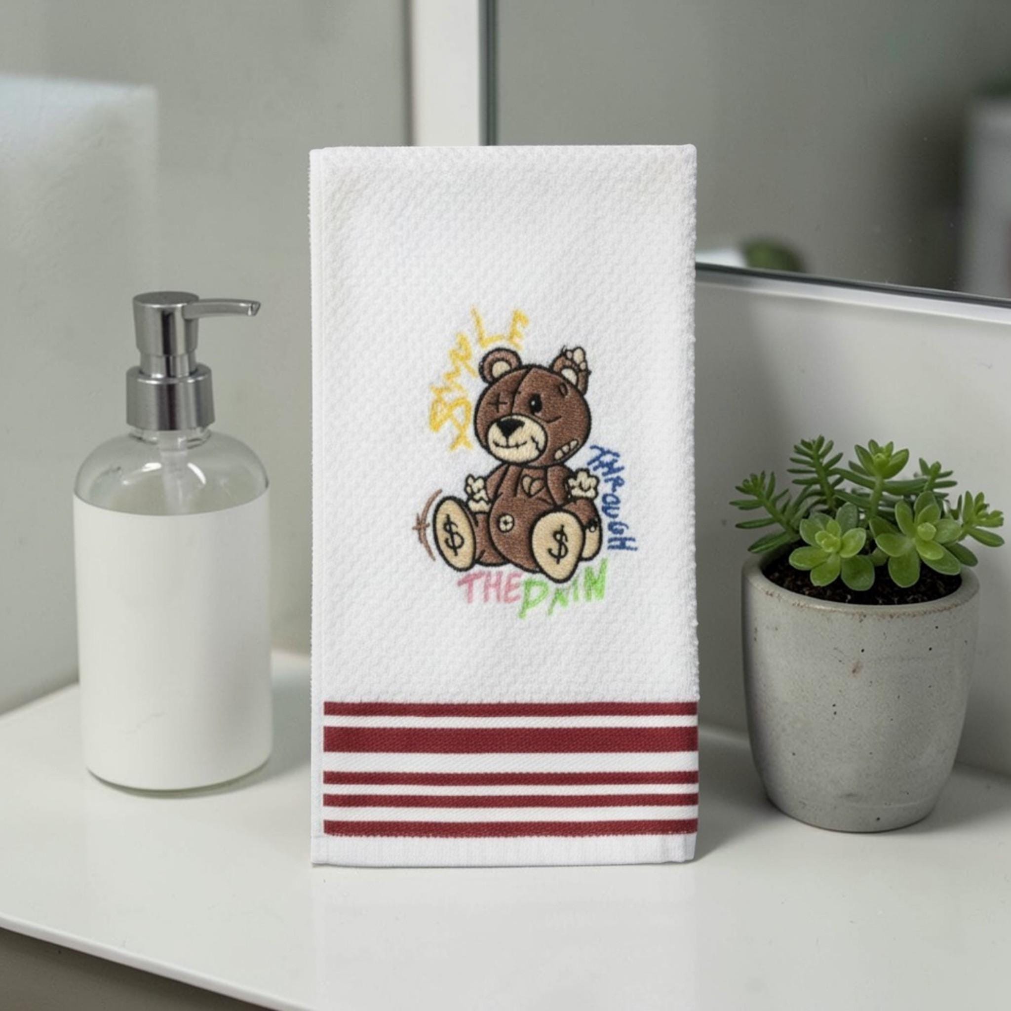 Custom‑made embroidered hand towels are personalized towels featuring stitched designs, names, initials, or logos. They are typically made from soft, absorbent cotton and customized to match a theme, occasion, or decor. Embroidery adds a raised, textured detail that looks elegant and long‑lasting. These towels are often used as thoughtful gifts, decorative accents in bathrooms and kitchens, or branded items for events and businesses.