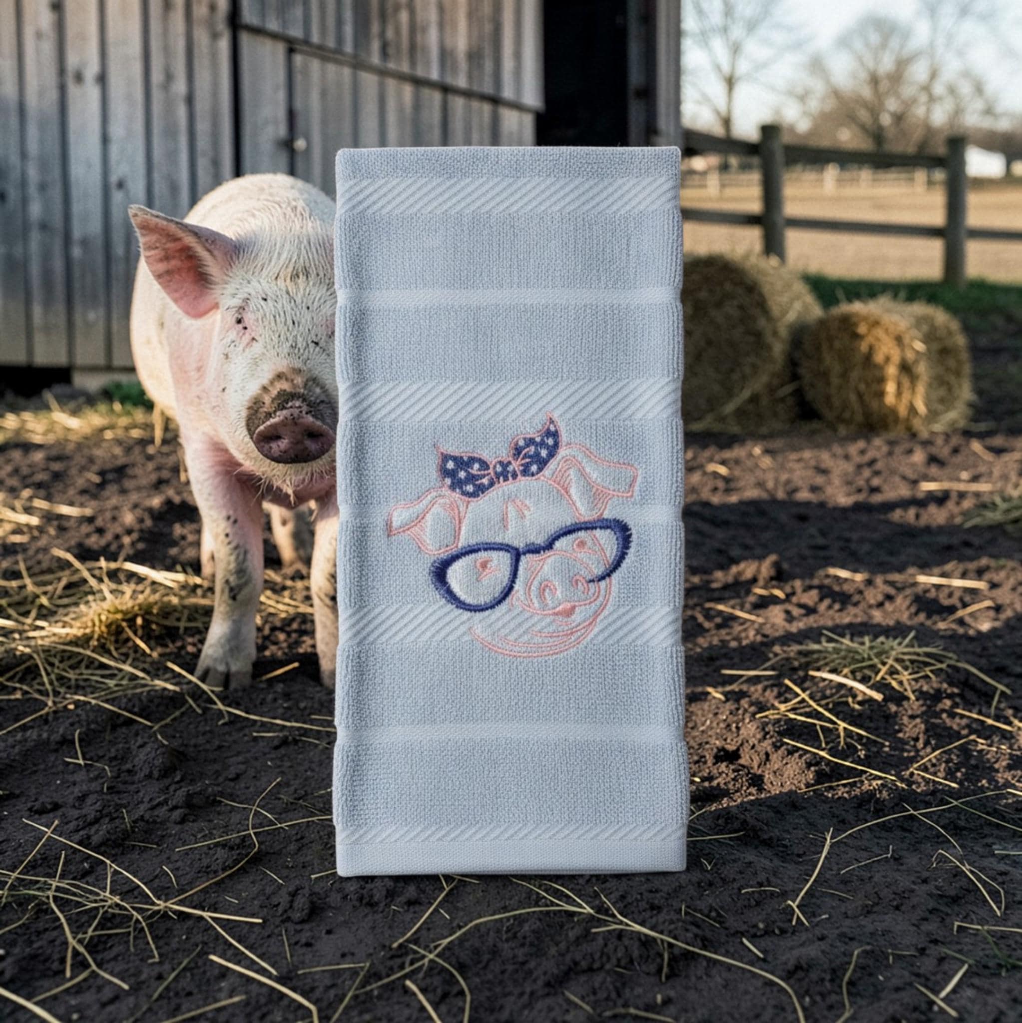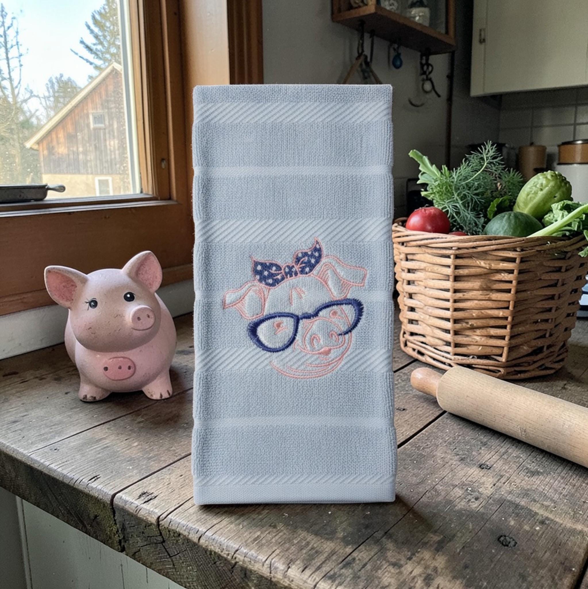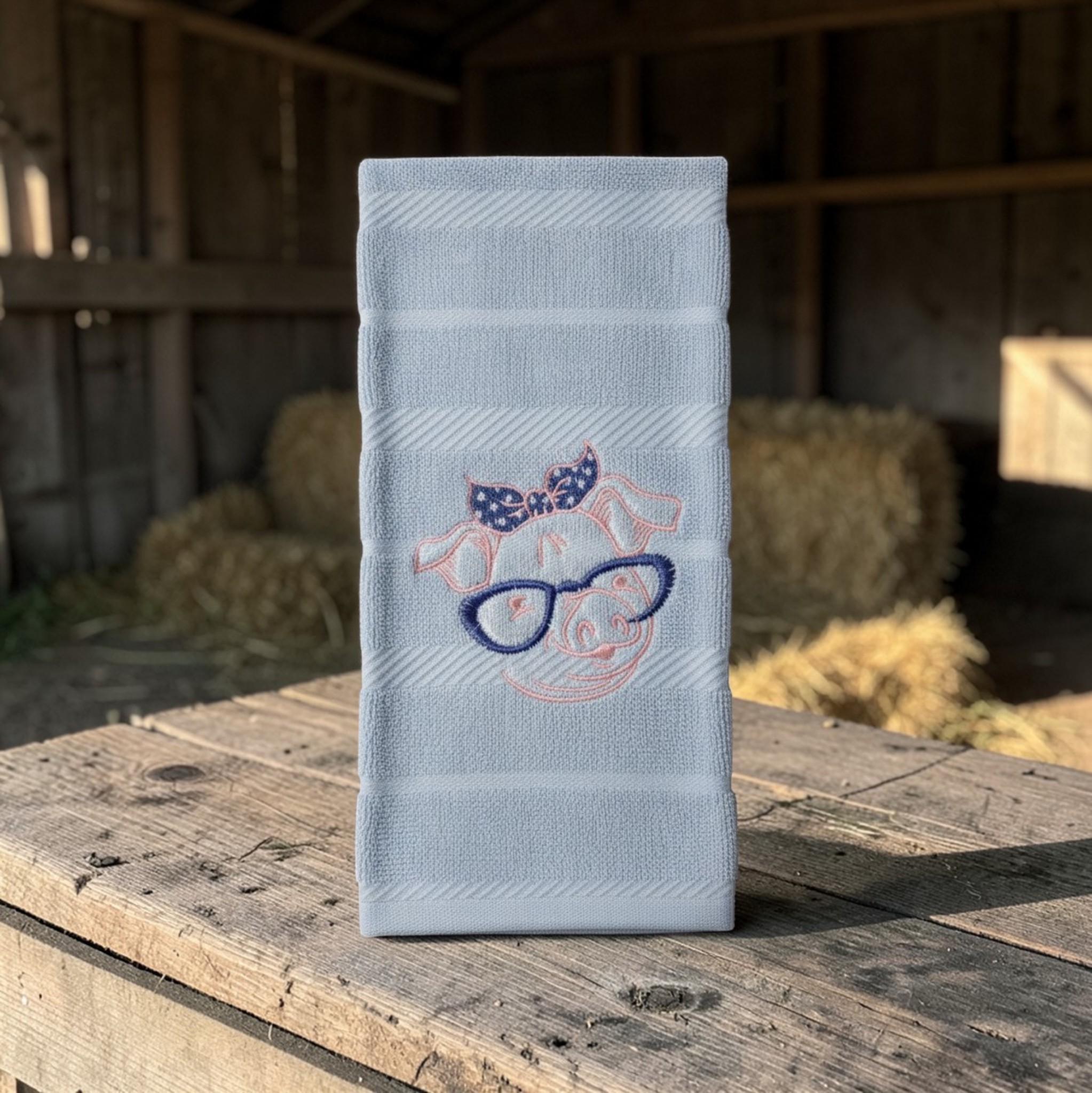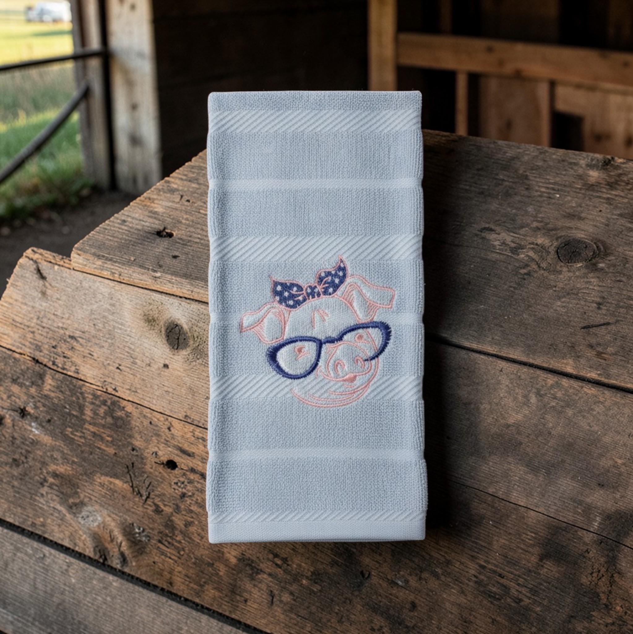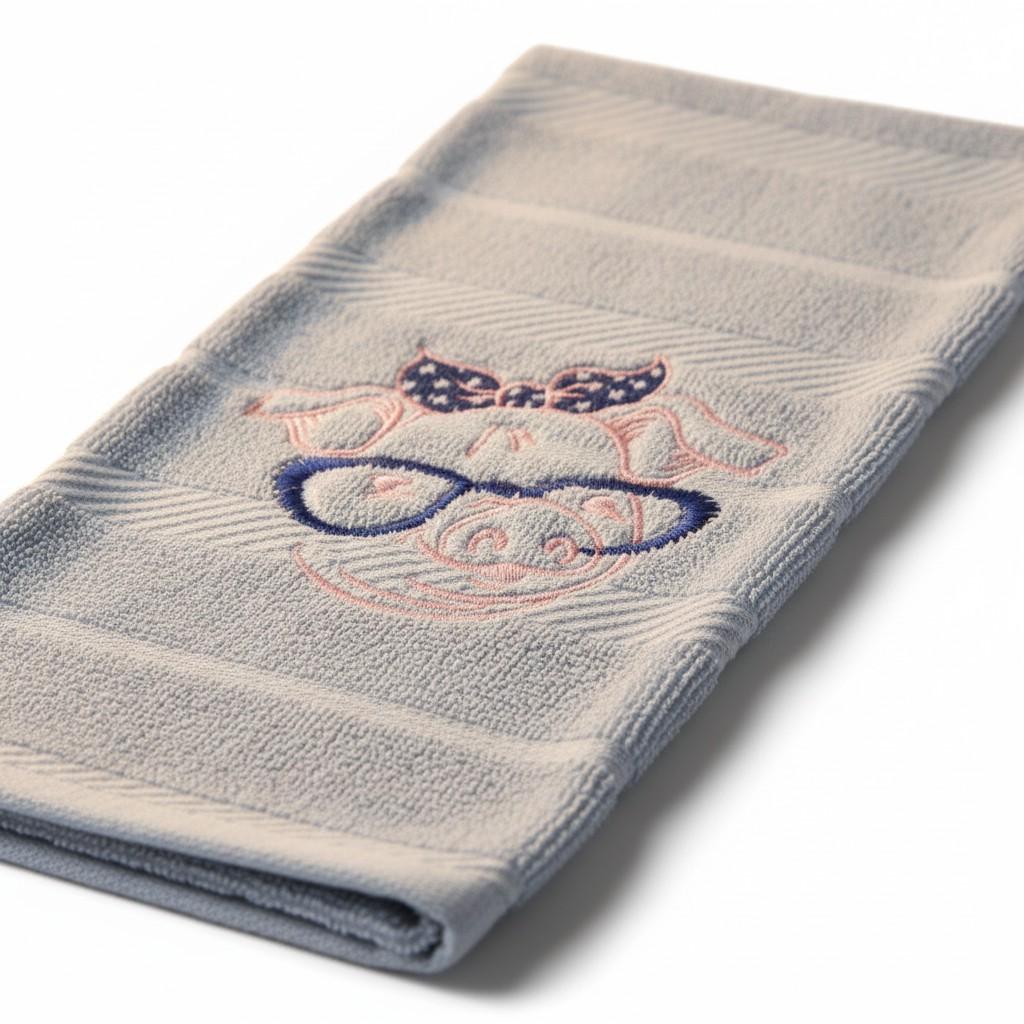 embroidered pig towel