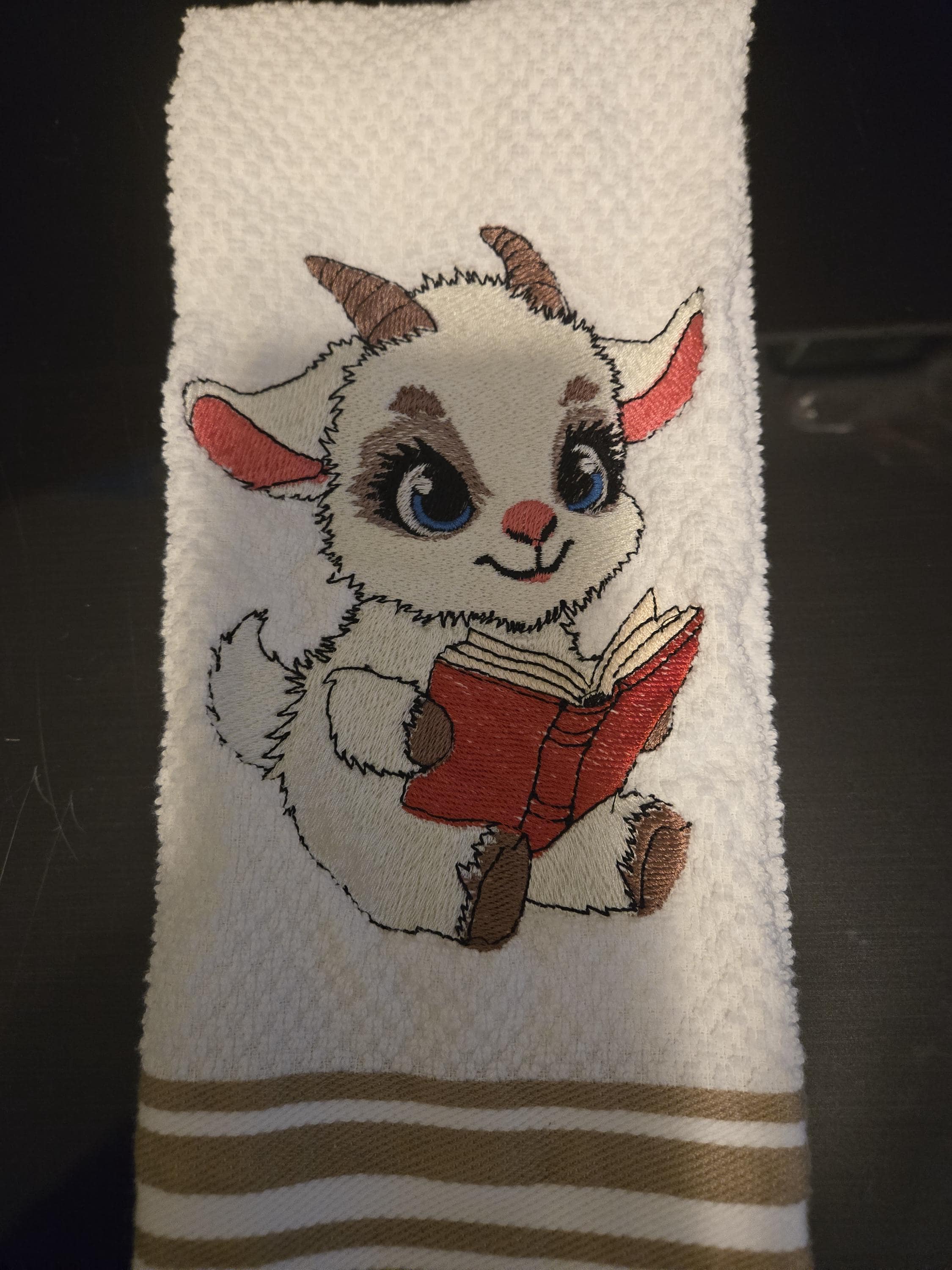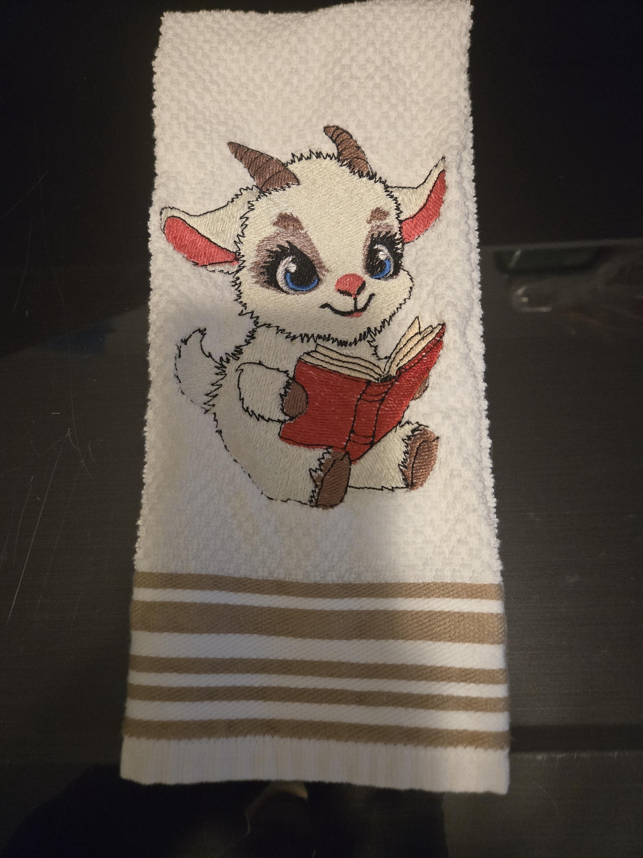 embroidered goat towel