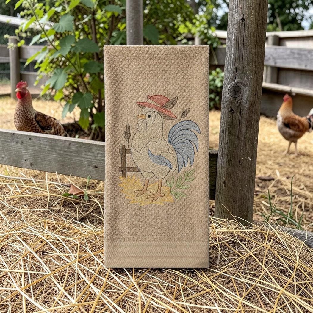 Embroidered chicken towel