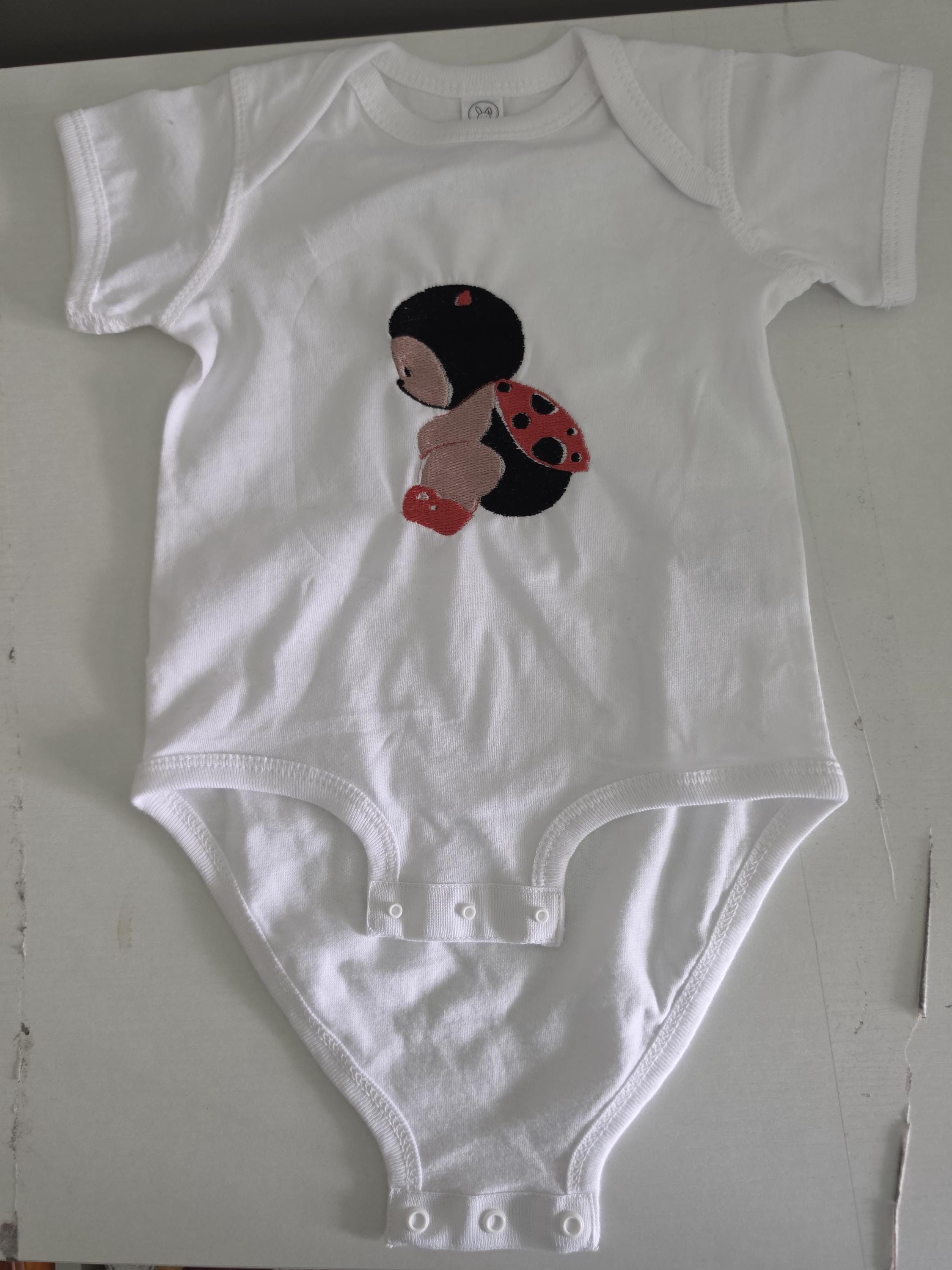 This adorable ladybug baby onesie is the perfect outfit for your little one or a thoughtful baby shower gift. Each design is professionally embroidered for a high-quality, long-lasting finish that wont fade
