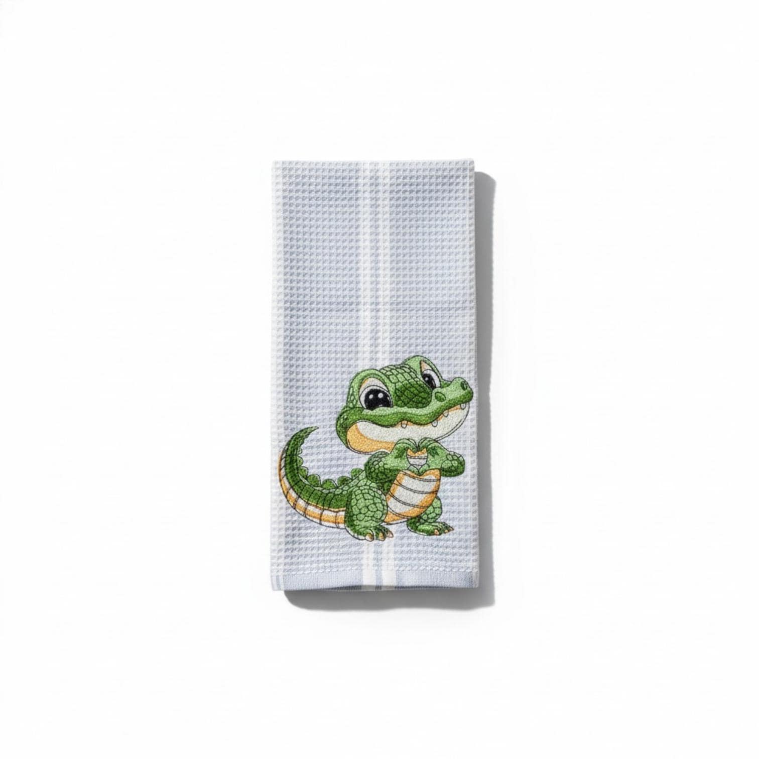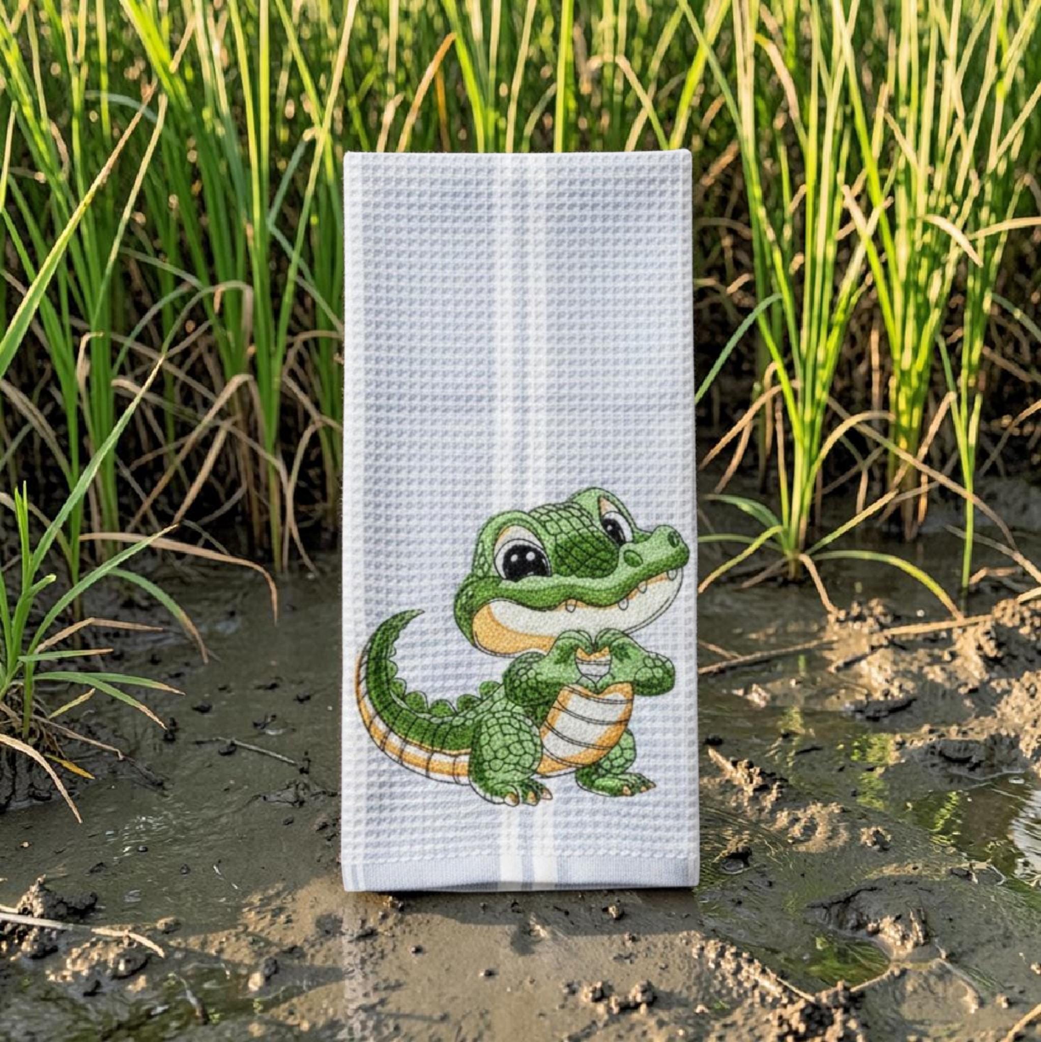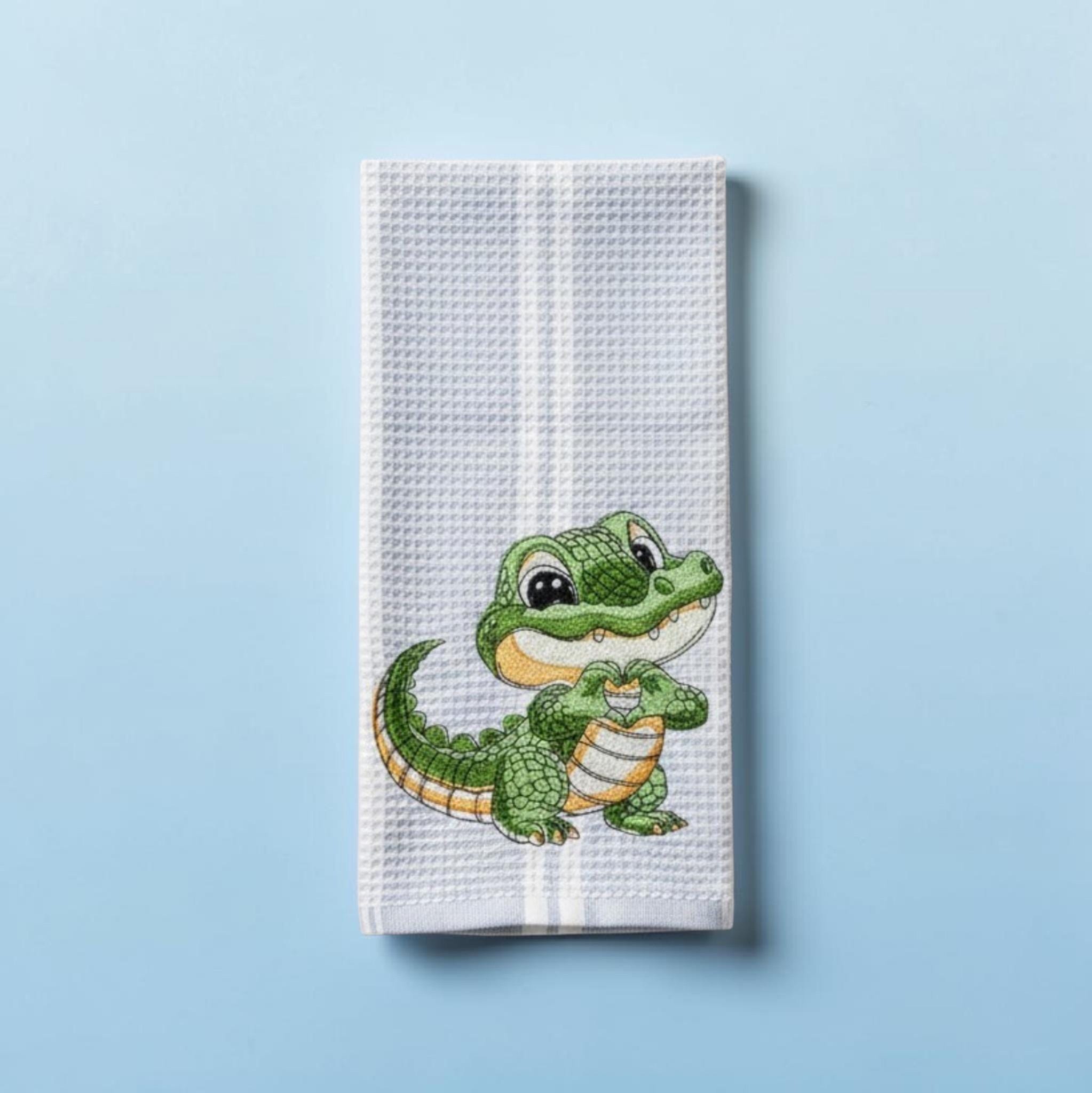 Each towel is carefully embroidered with a detailed alligator design, making it a unique accent piece or a thoughtful gift for animal lovers, housewarmings, birthdays, or holidays.