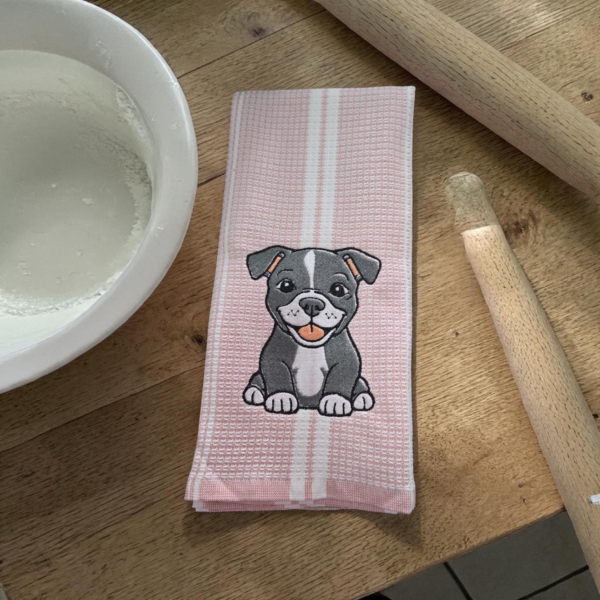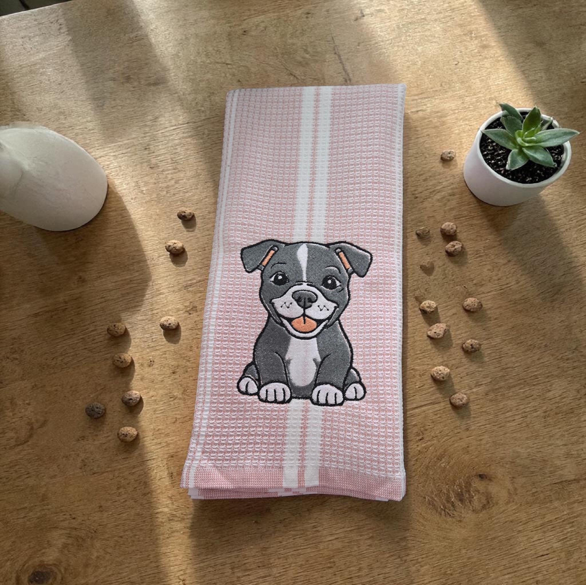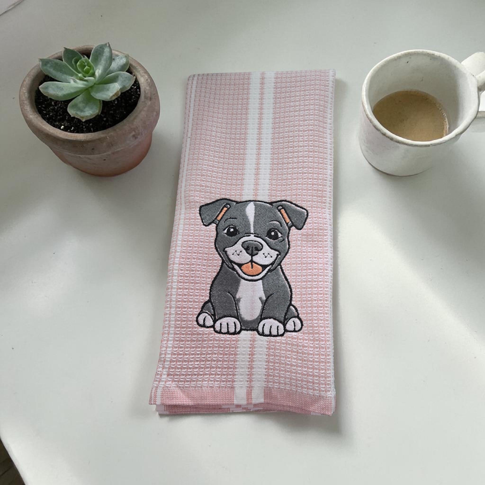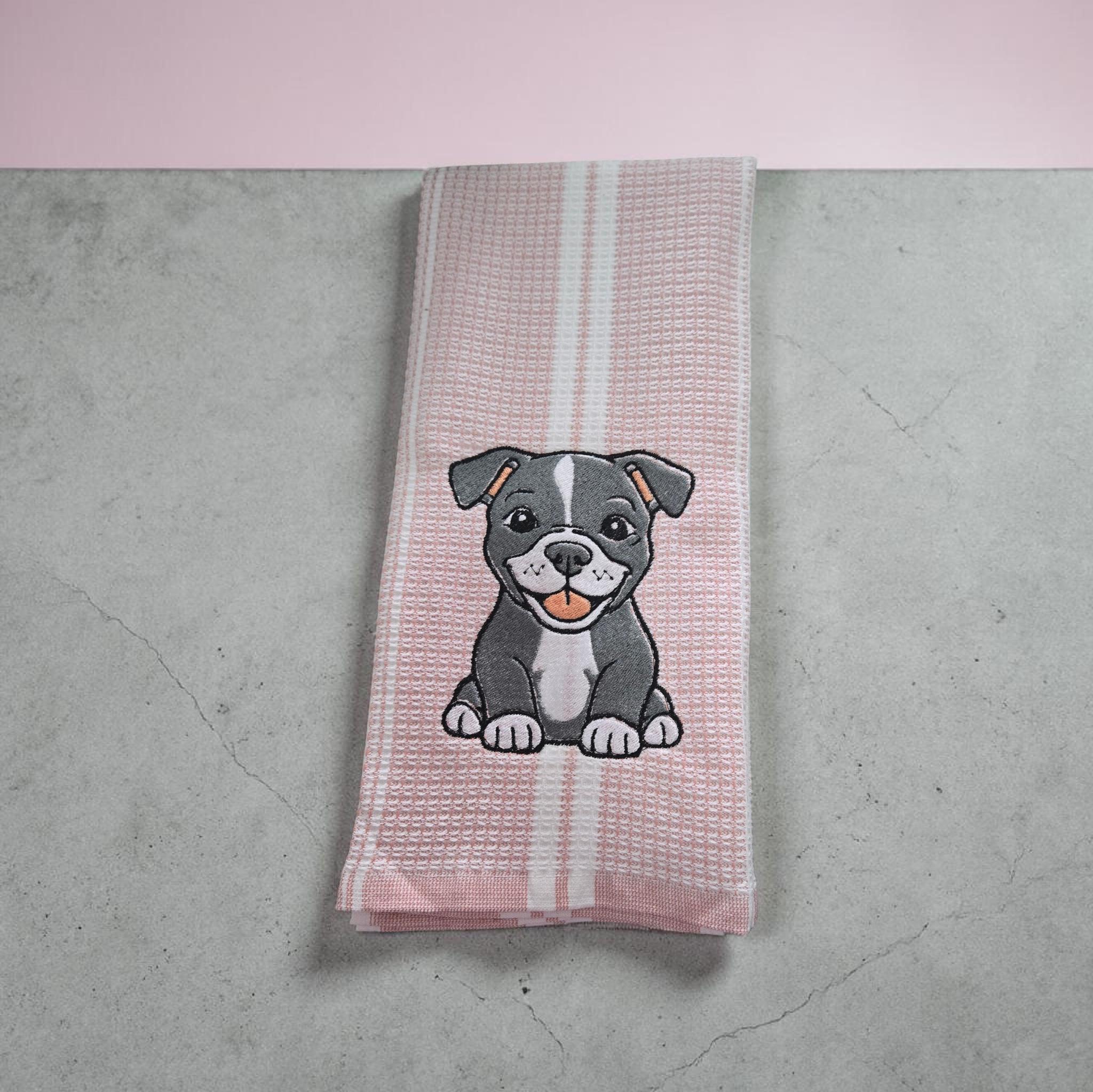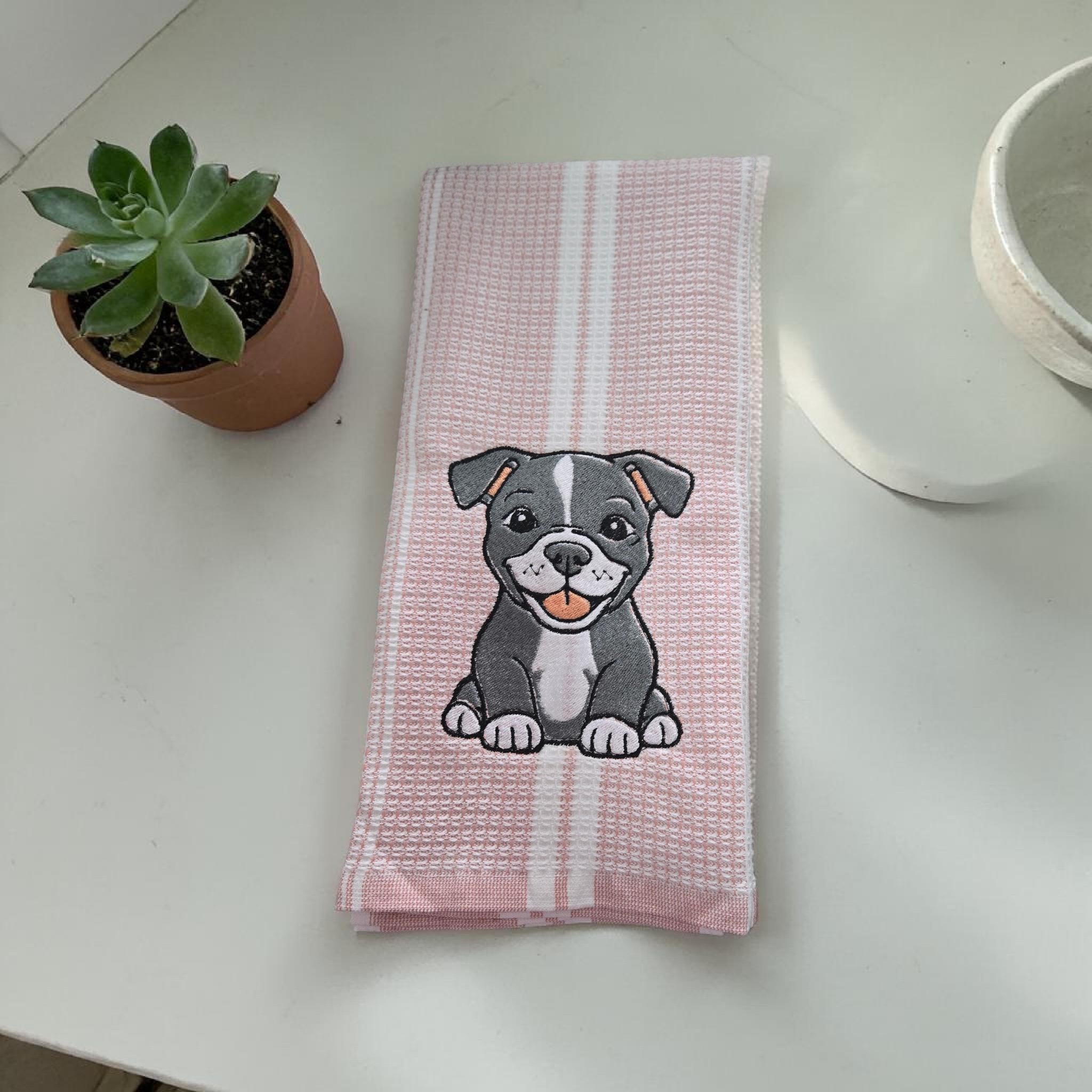 Custom‑made embroidered hand towels are personalized towels featuring stitched designs, names, initials, or logos. They are typically made from soft, absorbent cotton and customized to match a theme, occasion, or decor. Embroidery adds a raised, textured detail that looks elegant and long‑lasting. These towels are often used as thoughtful gifts, decorative accents in bathrooms and kitchens, or branded items for events and businesses.An adorable embroidered hand towel featuring a sweet puppy face with floppy ears, bright eyes, and a tiny nose. You can stitch it in soft browns, black, white, or golden tones depending on the breed look you want. Add fun little accents like paw prints, a bone, a heart, or a bow to make it extra charming. This design is perfect for dog lovers, pet-themed décor, bathroom towels, kitchen towels, or thoughtful gifts.